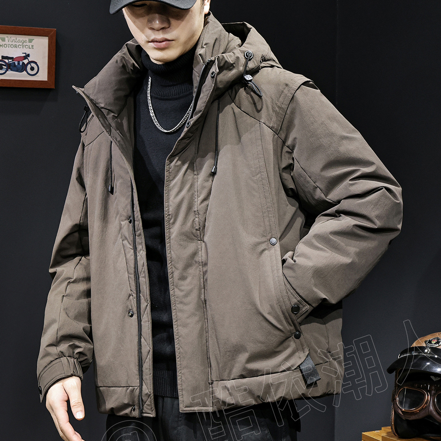 爆款国标90白鸭绒羽绒服男连帽工装外套2025冬季新款保暖潮牌大码