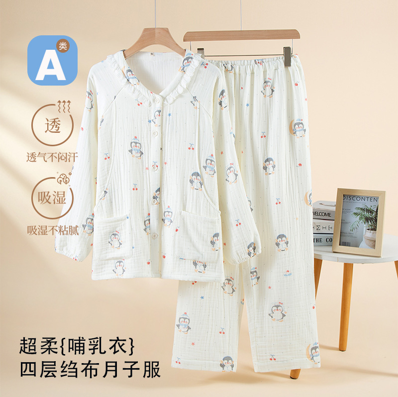A类全棉纱布月子服秋冬季新款卡通套装厚款孕期产后可哺乳月子服