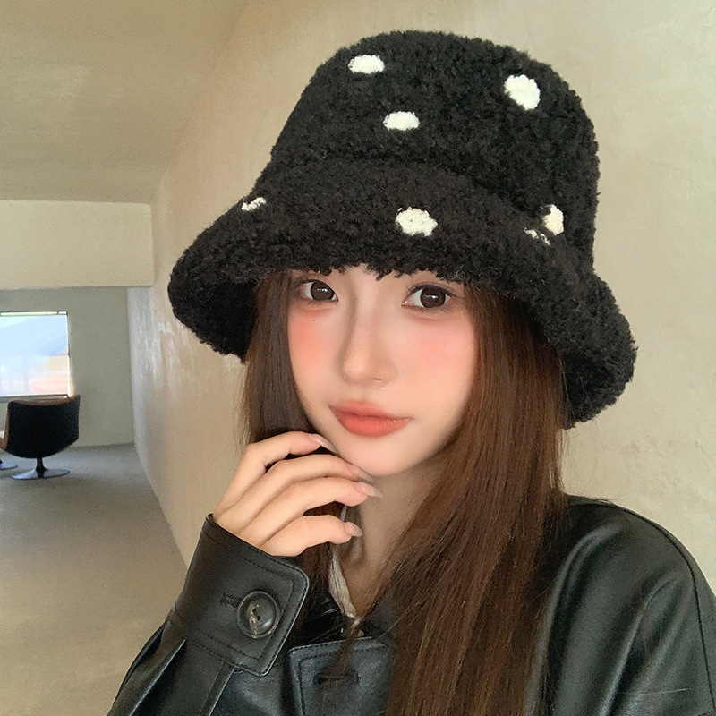 2025新款韩版秋冬毛绒渔夫帽女羊羔毛保暖帽子显脸小时尚盆帽男潮