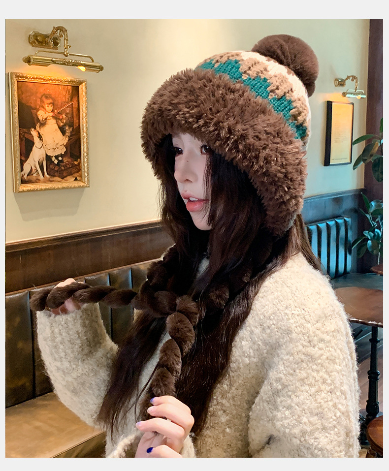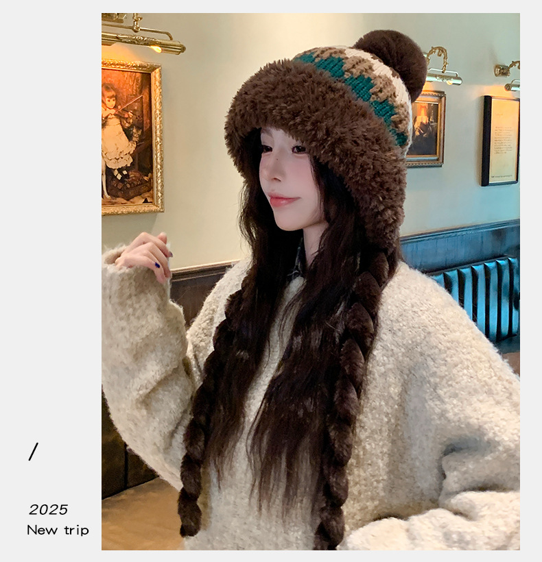 2025新款复古针织毛线帽子女秋冬可爱小手护耳冷帽保暖防寒雷锋帽