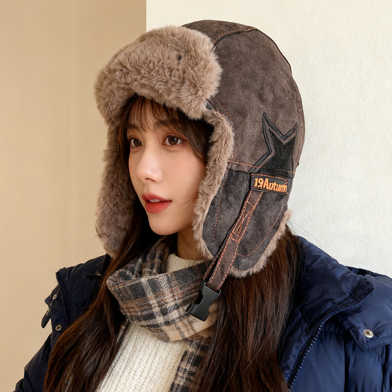 冬季加绒加厚保暖雷锋帽子男女同款护耳飞行员帽户外骑行防寒棉帽