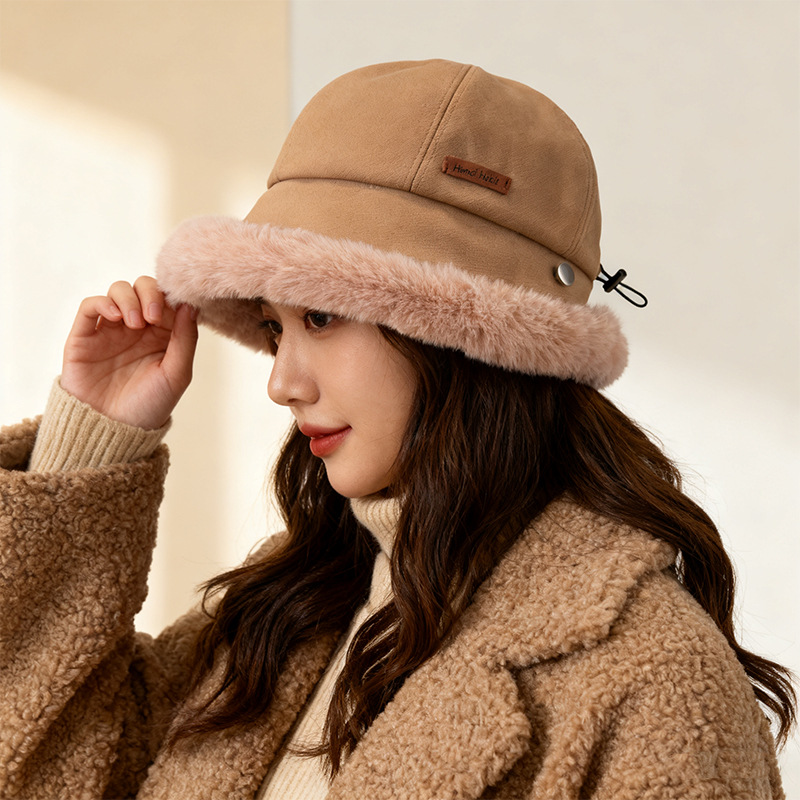 毛绒帽子女冬季新款加绒渔夫帽加厚骑车保暖棉帽东北户外防寒盆帽