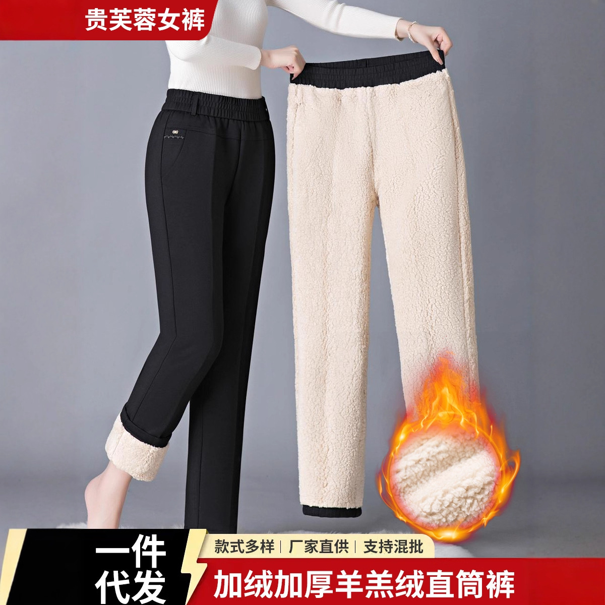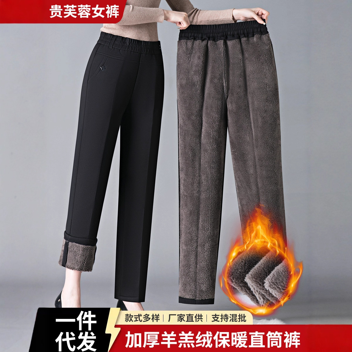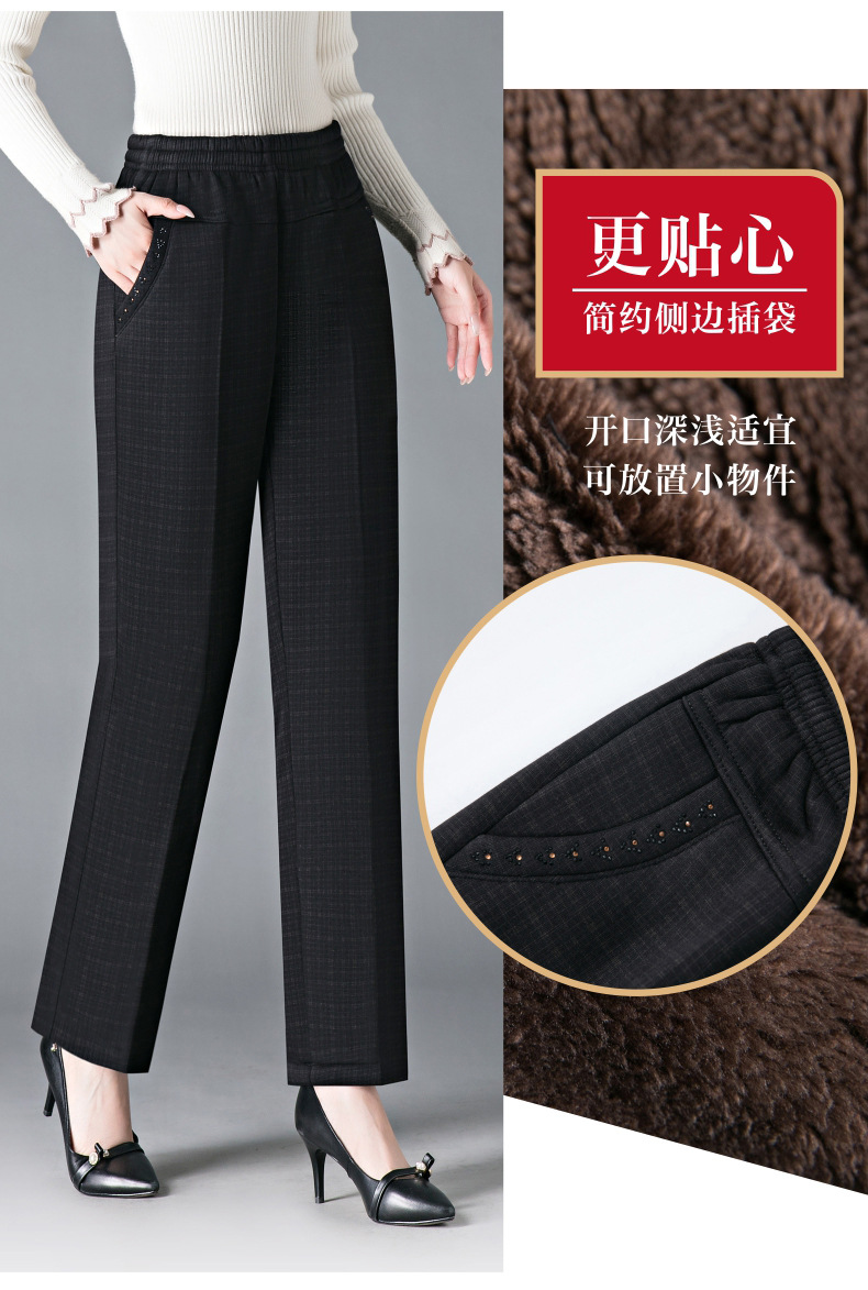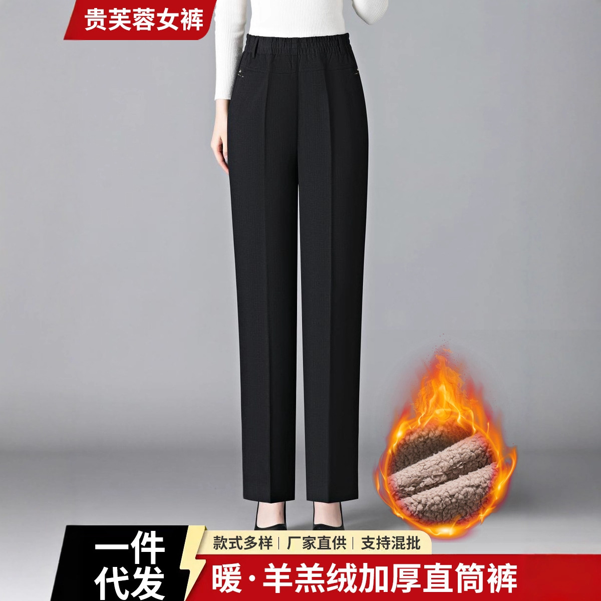 冬季女士高腰直筒长裤中老年休闲裤加绒加厚女裤羊羔绒外穿保暖裤