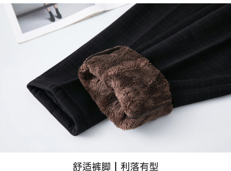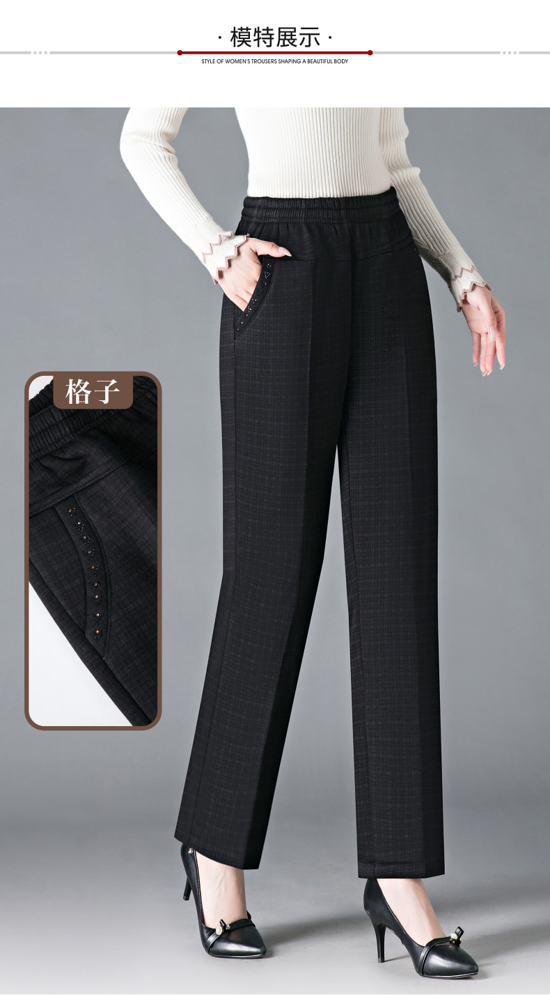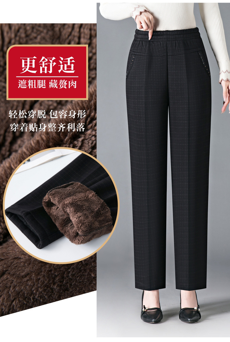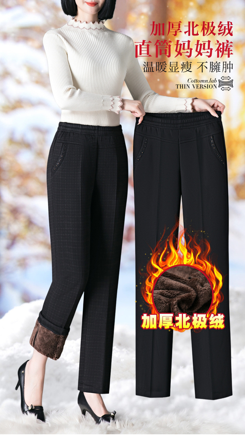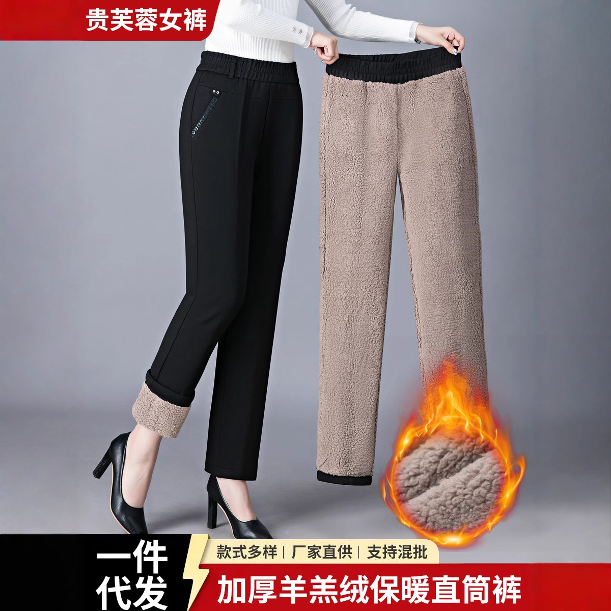 冬季女士高腰直筒长裤中老年休闲裤加绒加厚女裤羊羔绒外穿保暖裤