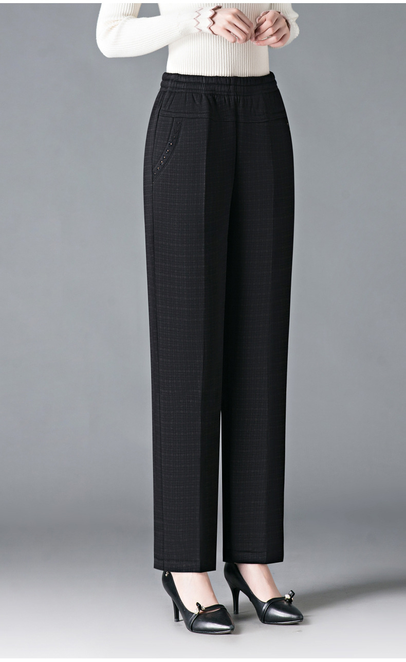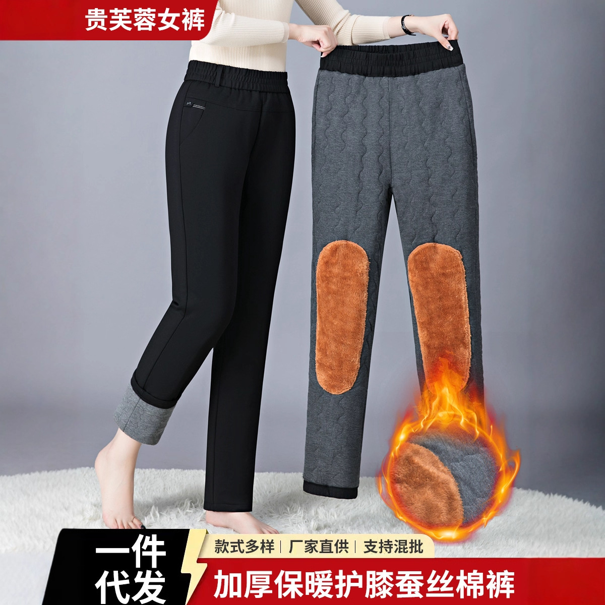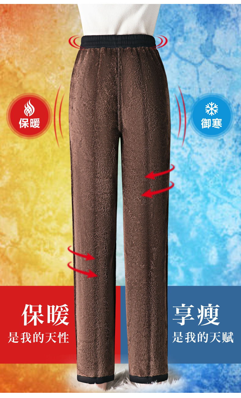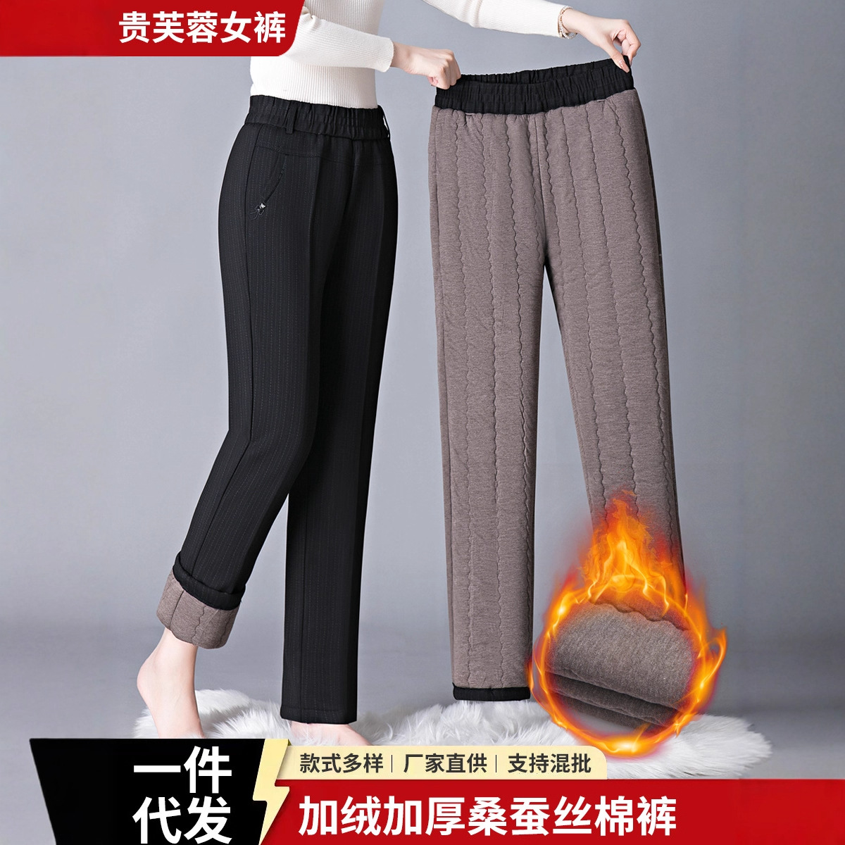 冬季女士高腰直筒长裤中老年人保暖裤加绒加厚夹棉蚕丝棉休闲裤
