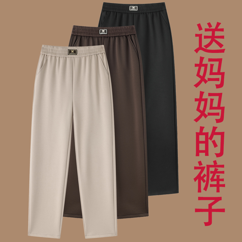妈妈裤子春秋季新款直筒裤洋气中老年人女裤宽松松紧腰小个子长裤