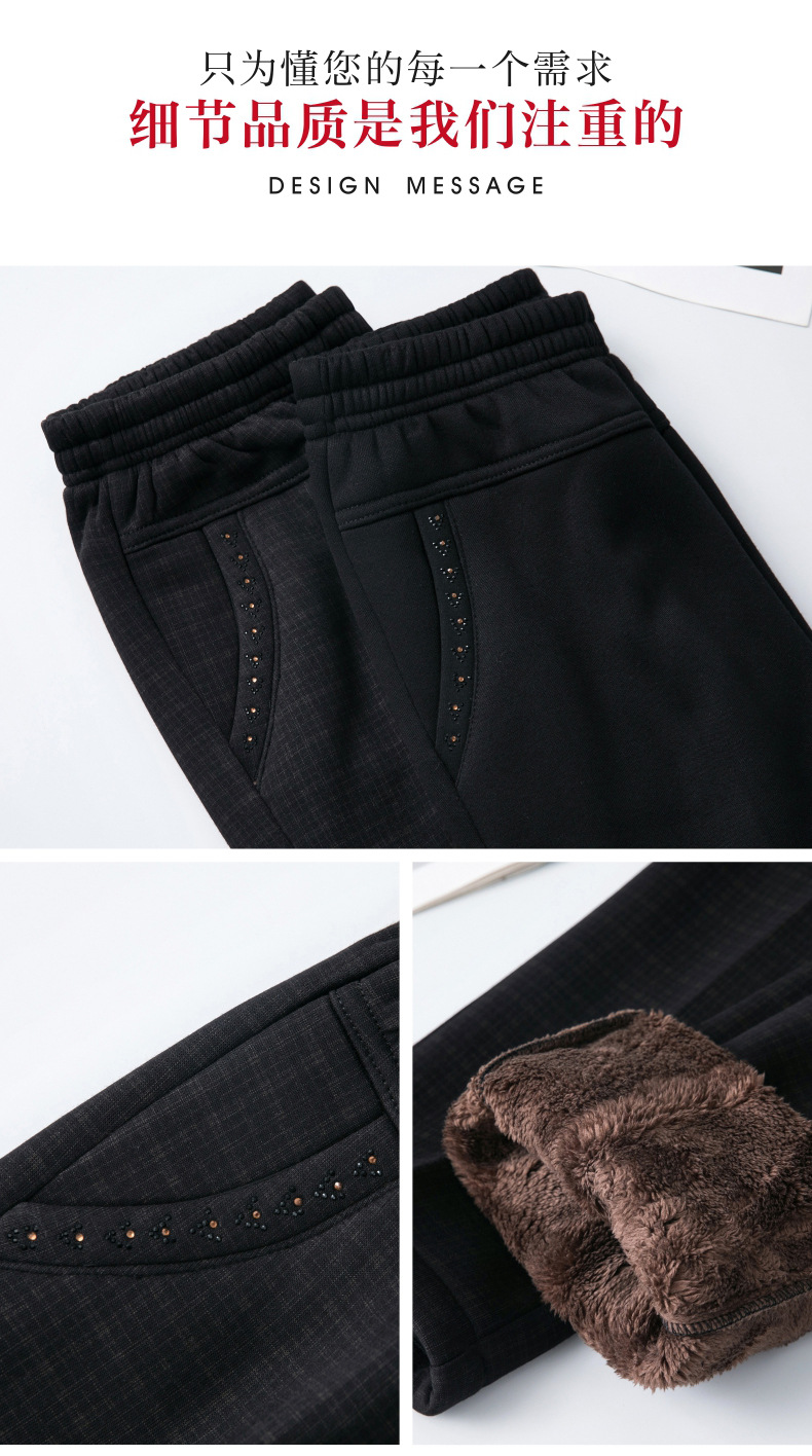 妈妈裤子秋冬加绒加厚保暖裤中老年女士松紧高腰直筒休闲长裤