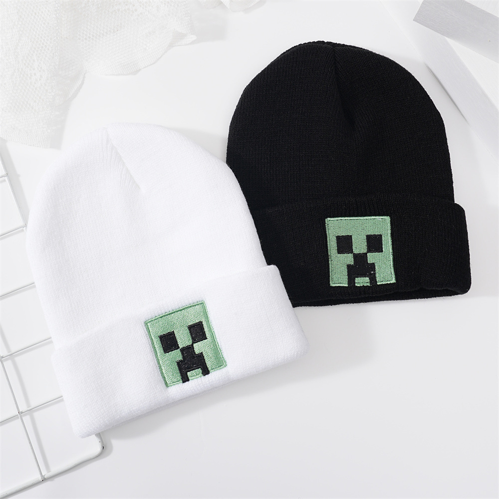 我的世界游戏刺绣针织帽秋冬季男女保暖毛线套头帽子圣诞节包头帽
