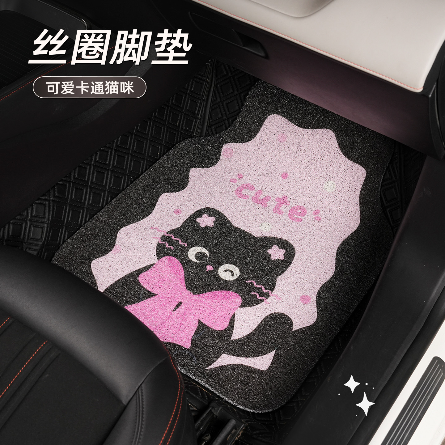 かわいい漫画の猫の車のフットマット、快適で滑り止めの車のフットマット、クリエイティブな蝶結びの猫の車のフットマット