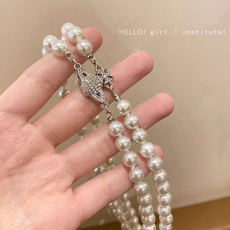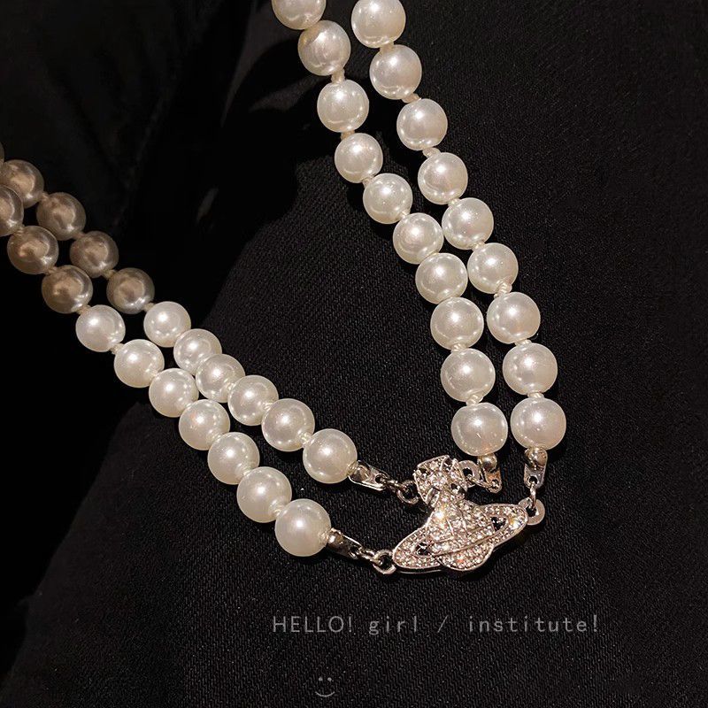 土星双层珍珠磁吸式项链女2025新款锁骨链轻奢小众设计感海边颈链