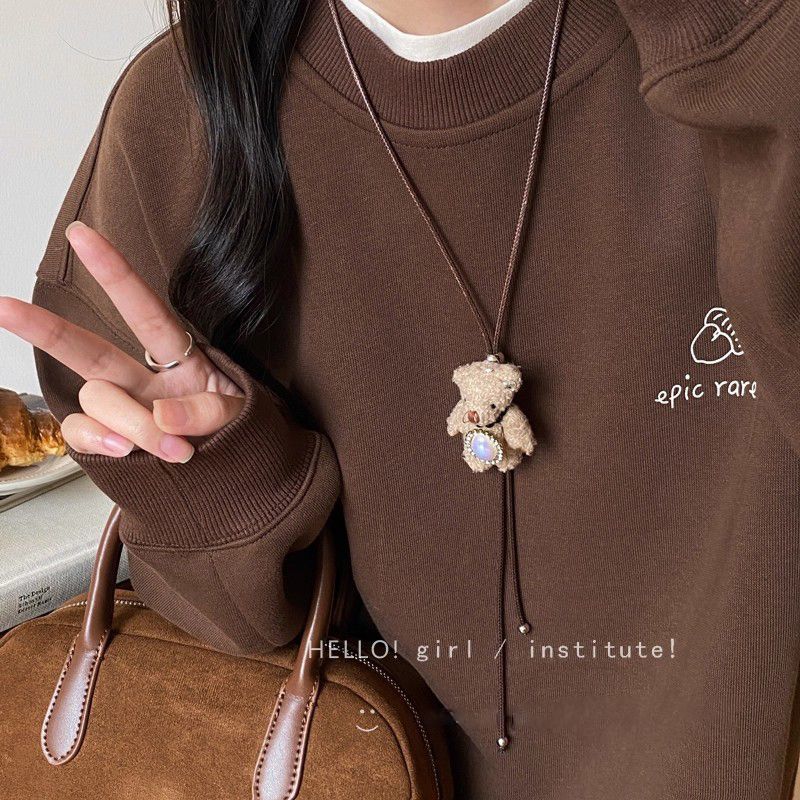 抓娃娃~可爱卡通小熊吊坠项链女小众设计挂脖秋冬长款毛衣链配饰