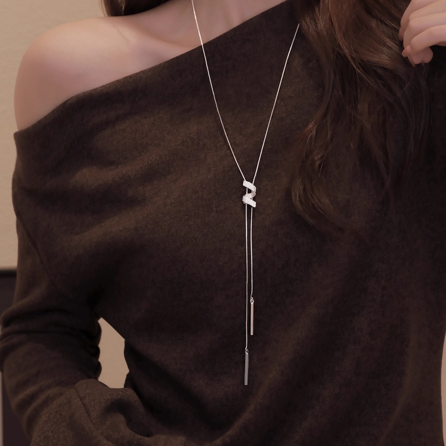 秋冬银色锆石抽拉项链女2025新款爆款轻奢小众设计长款毛衣链配饰