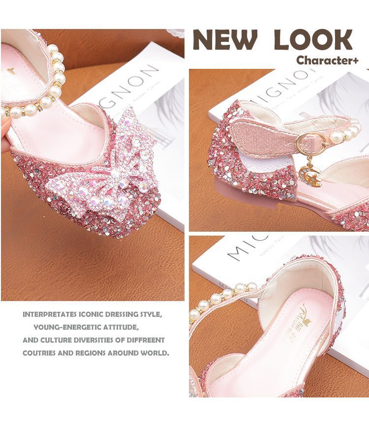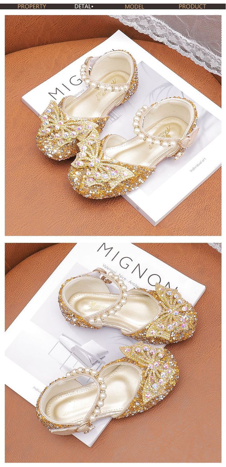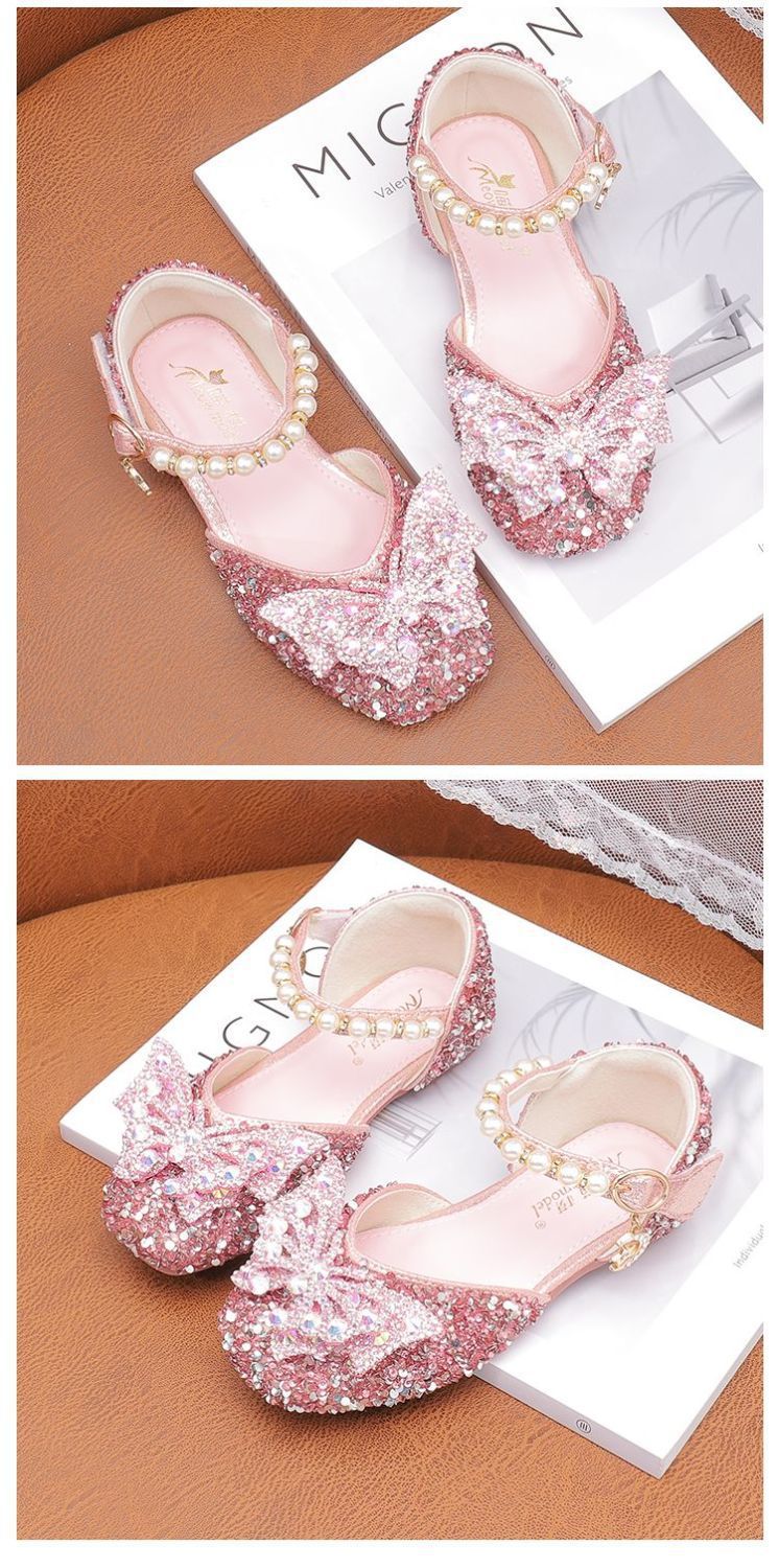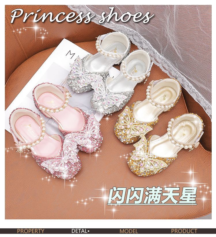 2025 春の新冷凍女の子プリンセスシューズ弓女の子シングルシューズ漫画スパンコール子供革靴