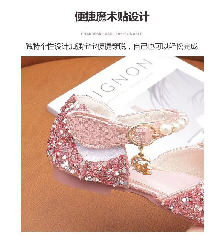 女の子用エルサプリンセスシューズ2026春新作子供用ソフトソールシューズ女の子用パフォーマンス用スパンコールクリスタルシューズ