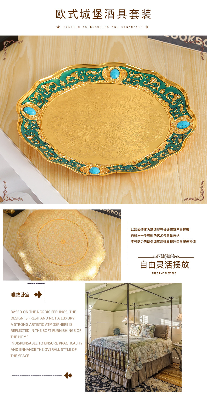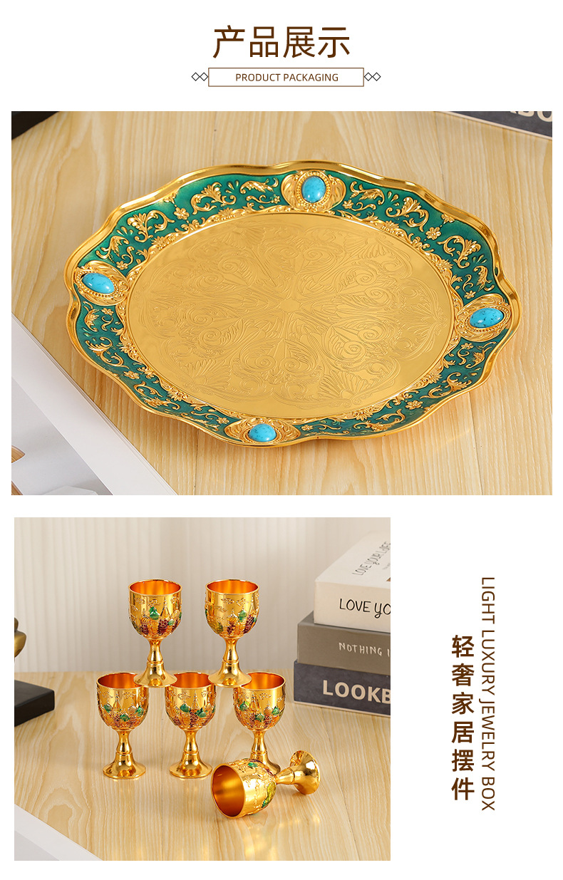 ヨーロッパスタイルのレトロで美しいレリーフ高足カップ高級杯トレーセット軽豪華風高級ホテルテーブル酒具