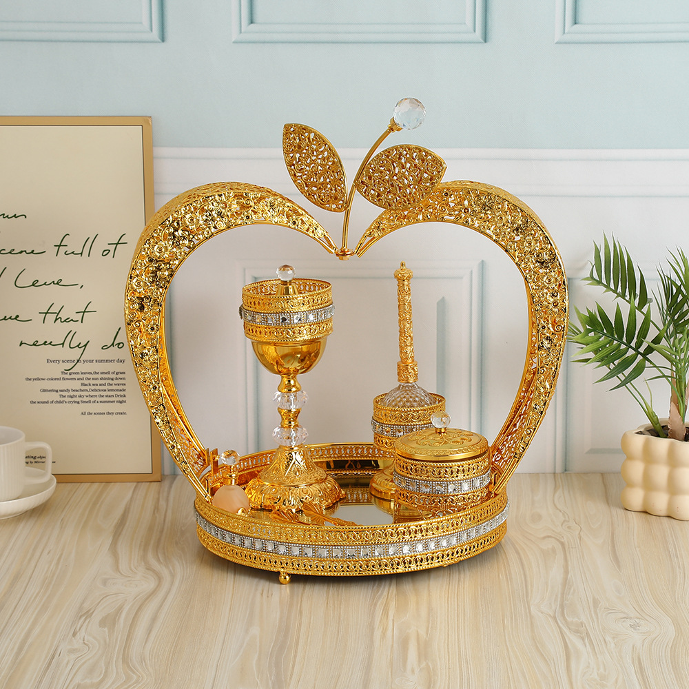 跨境爆款家居摆件中东阿拉伯香炉套装高级感金色镂空香薰香炉批发