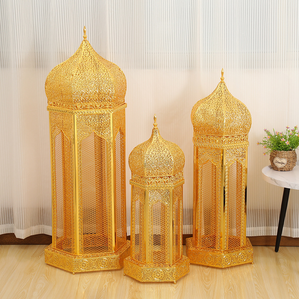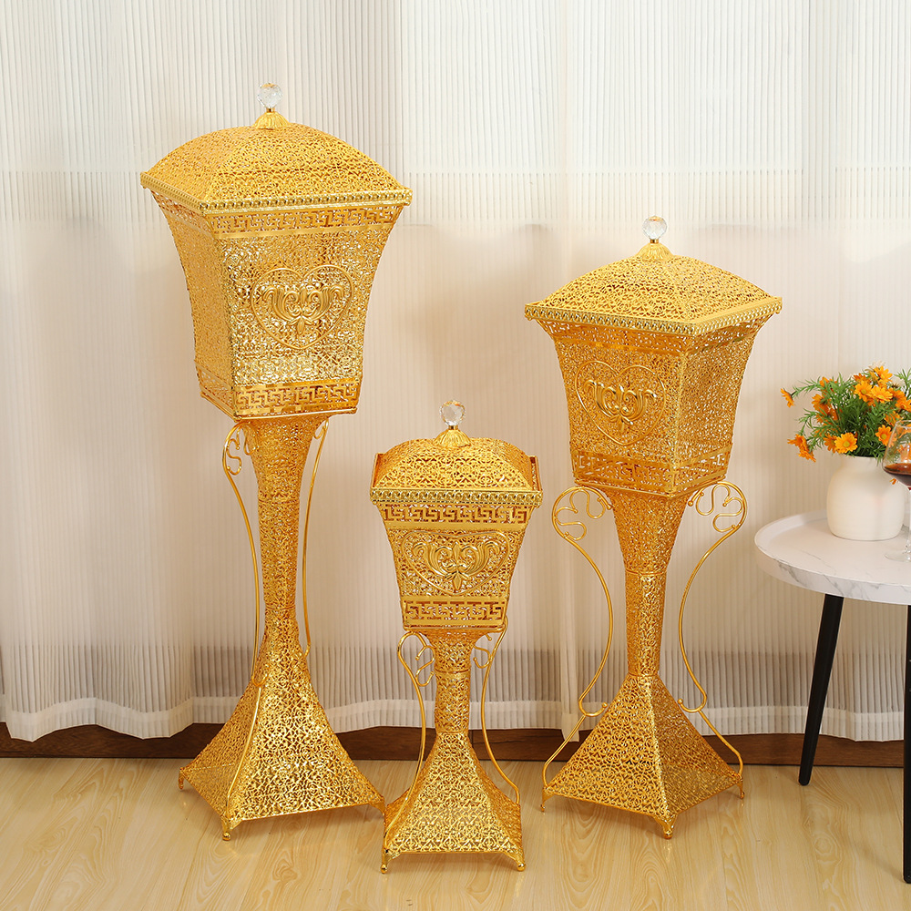 欧式轻奢铁质香炉四角大香阿拉伯家居摆件金色精美镂空香炉批发
