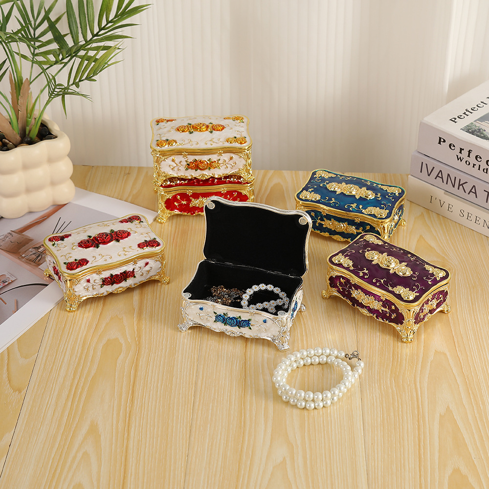 2025新款玫瑰花雕纹首饰盒珐琅彩首饰盒项链首饰耳饰收纳盒批发