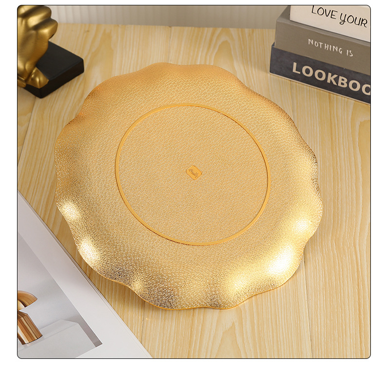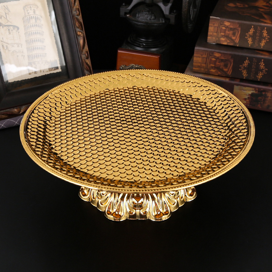 欧式轻奢锤纹托盘豪华高脚水果盘客厅茶几家用金属工艺品干果收纳