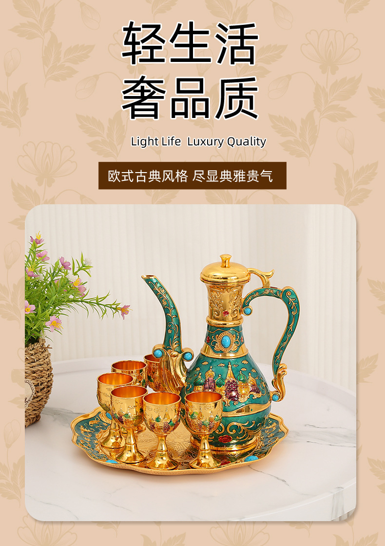 レトロ軽豪華酒具セット金属装飾酒具セット美しいプレゼント宮廷風酒壺杯セット