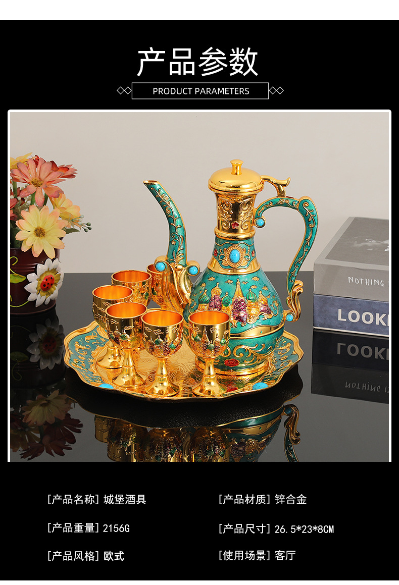 家用酒店中式酒杯套装礼品酒壶酒具轻奢典雅贵气城堡酒具套装客厅