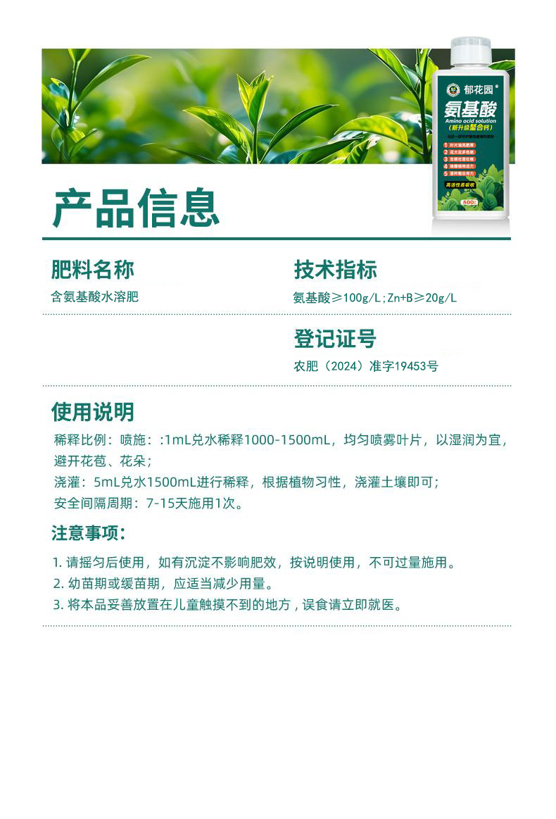 郁花园鱼蛋白水溶肥氨基酸瓜果蔬菜花卉通用叶面农用营养液生根剂