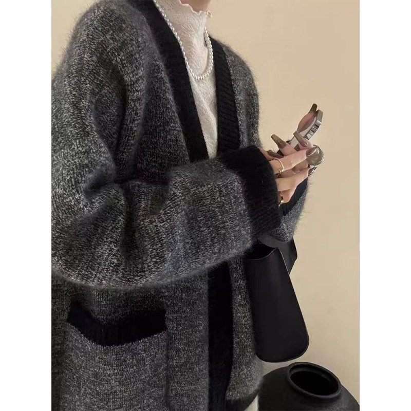丸首ニットのカーディガンの女性は2024秋の新型の洋気がだるくてゆったりしている大きいサイズの上着の韓国版のセーターのコートです。