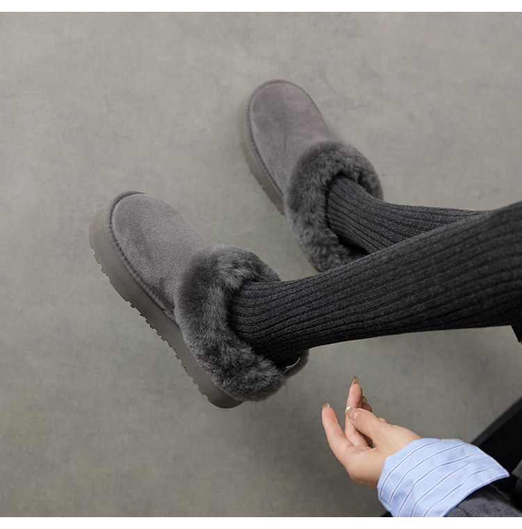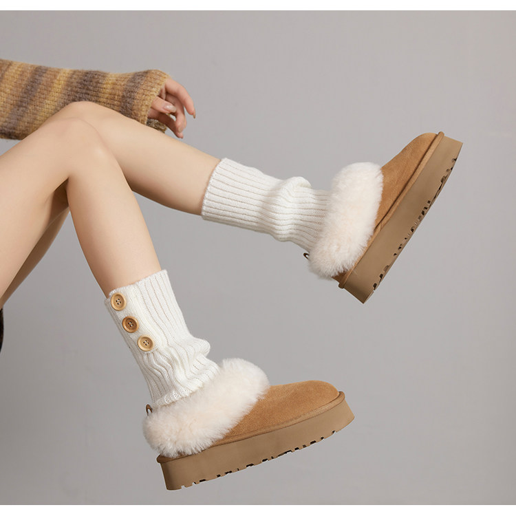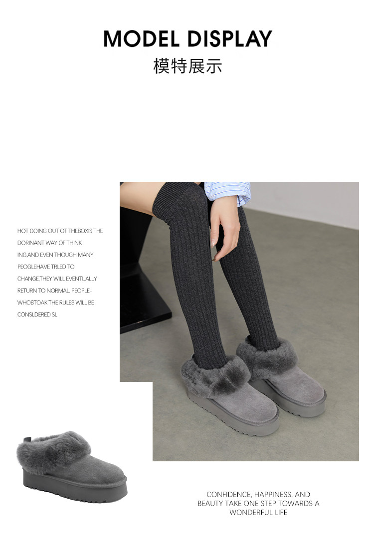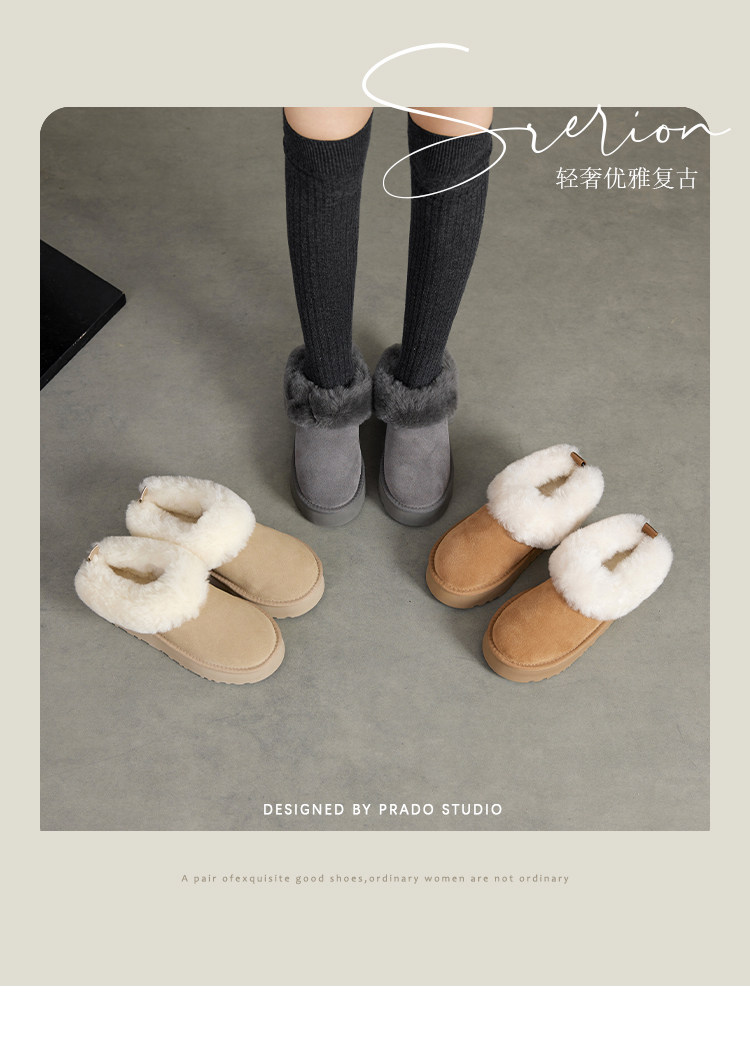 羊毛版~中跟皮毛一体厚底保暖软皮加厚雪地靴女冬季新款棉鞋女潮