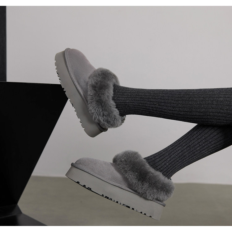 现货版皮毛一体女士舒适厚底一脚蹬休闲乐福鞋懒人毛毛鞋雪地棉鞋