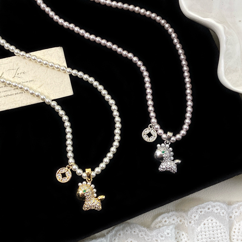 本命年满钻小马铜钱吊坠施家珍珠项链女设计感精致时尚百搭颈链