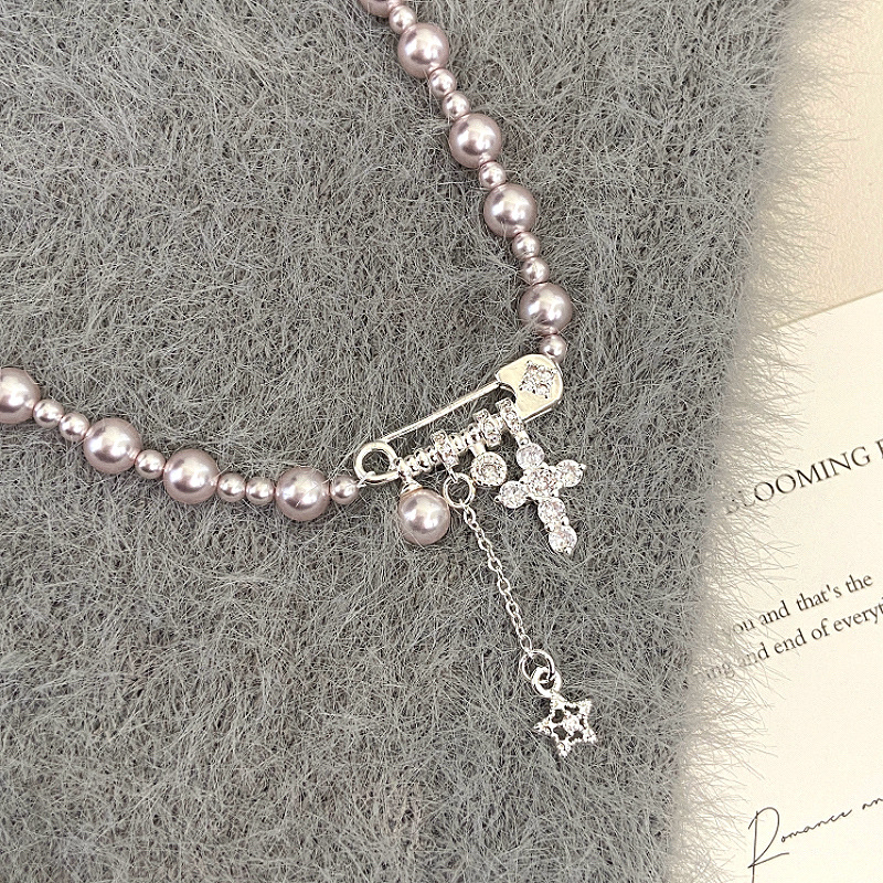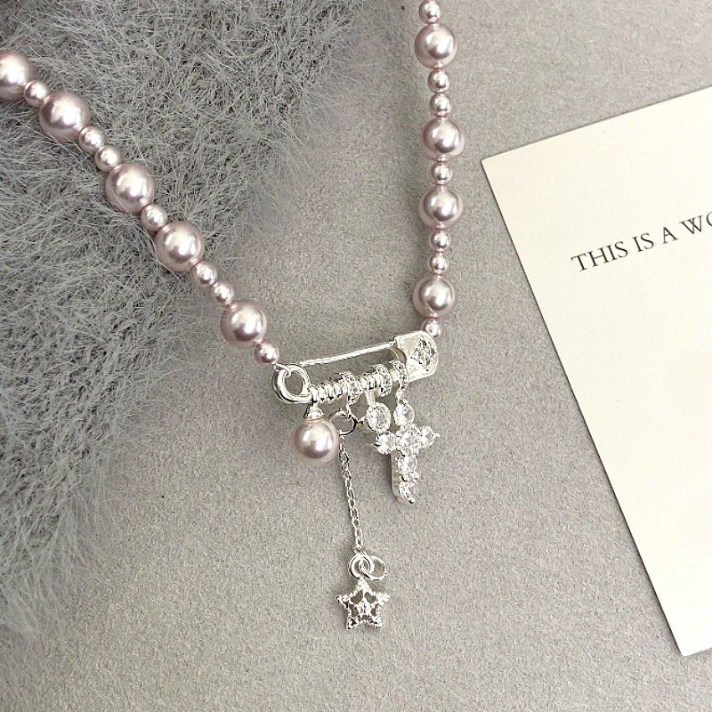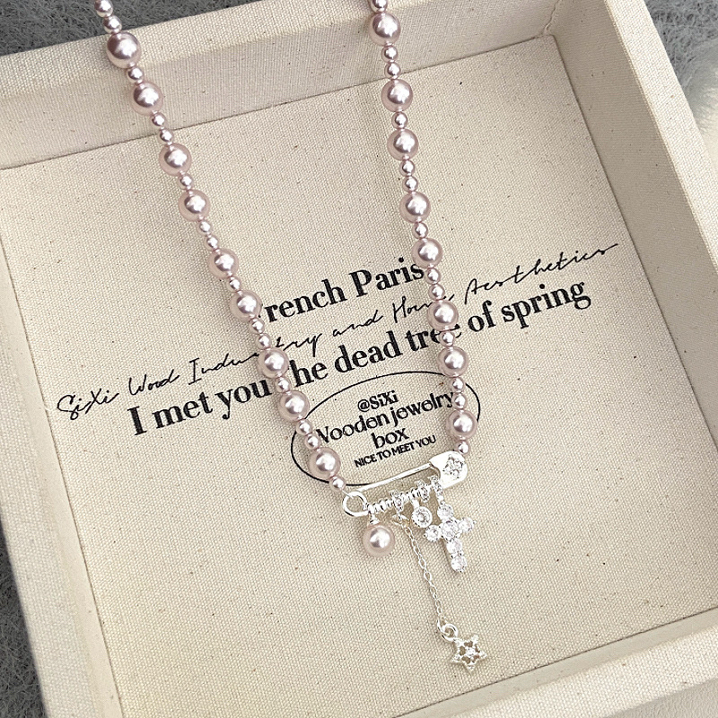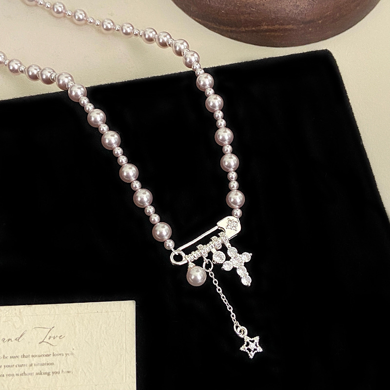 曼塔玫瑰施家珍珠别针十字架吊坠项链女设计感精致甜美锁骨链颈链