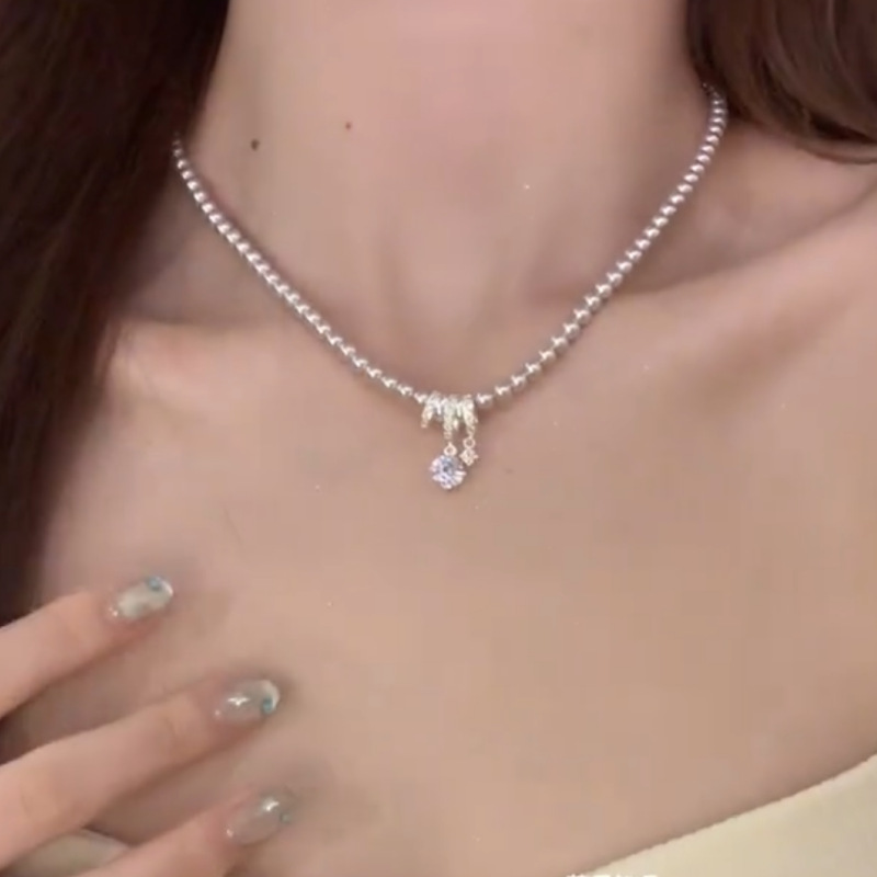 蝶結びフルダイヤモンド二層巻きシルバーパールネックレス女性用甘くてクールなフルダイヤモンド五芒星ネックレス絶妙な鎖骨チェーン