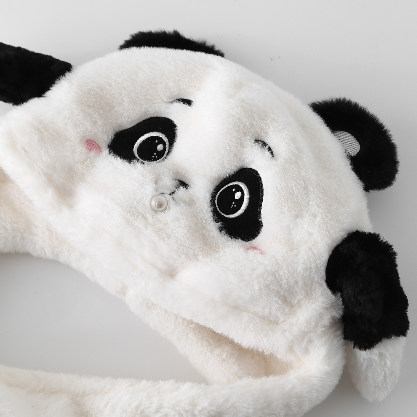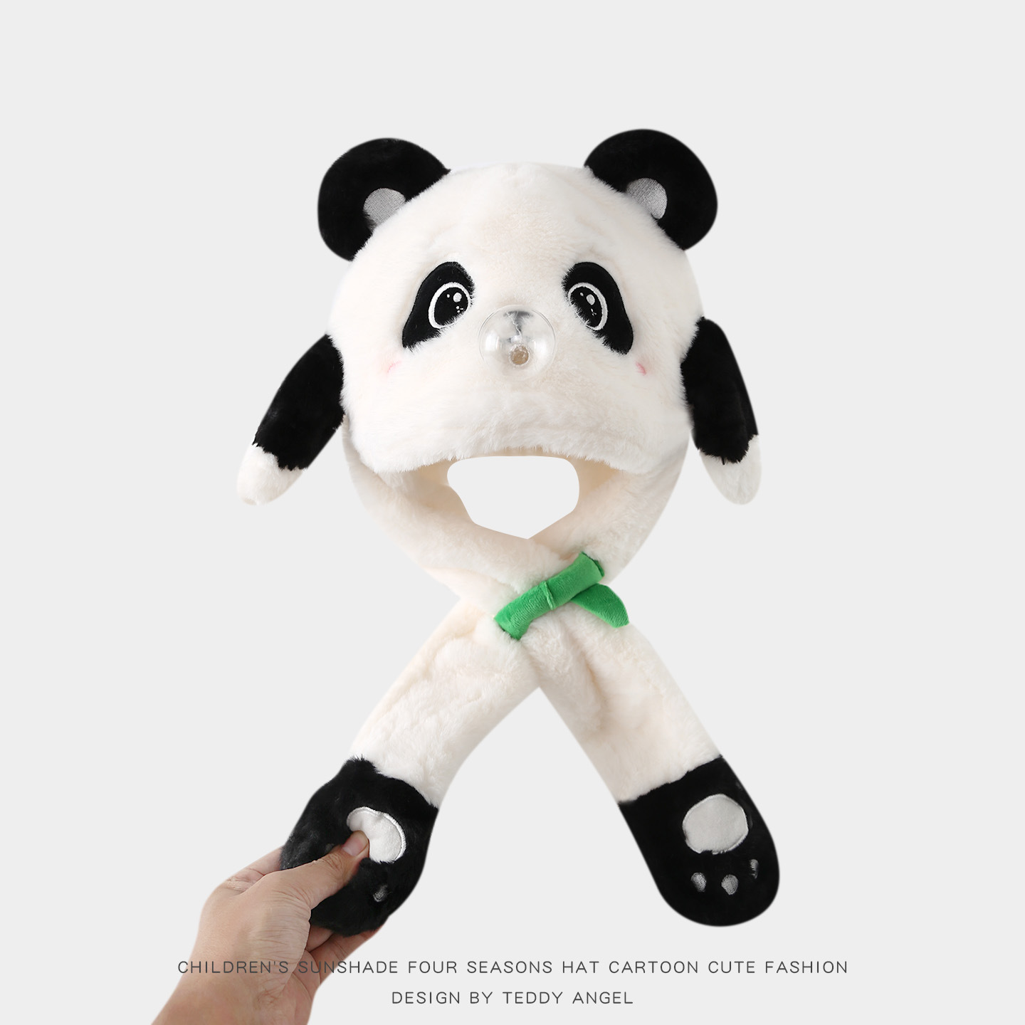 宝宝帽子冬季超萌熊猫耳朵会动男女童毛绒帽户外保暖防风儿童帽子