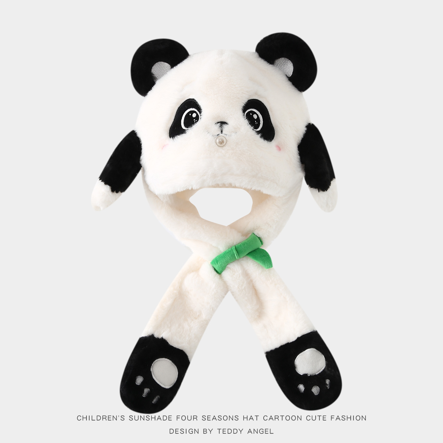 宝宝帽子围巾一体毛绒帽冬新款卡通熊猫可爱男女童保暖护耳包头帽