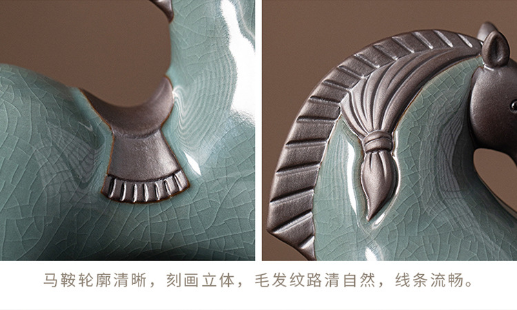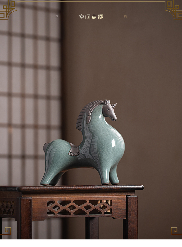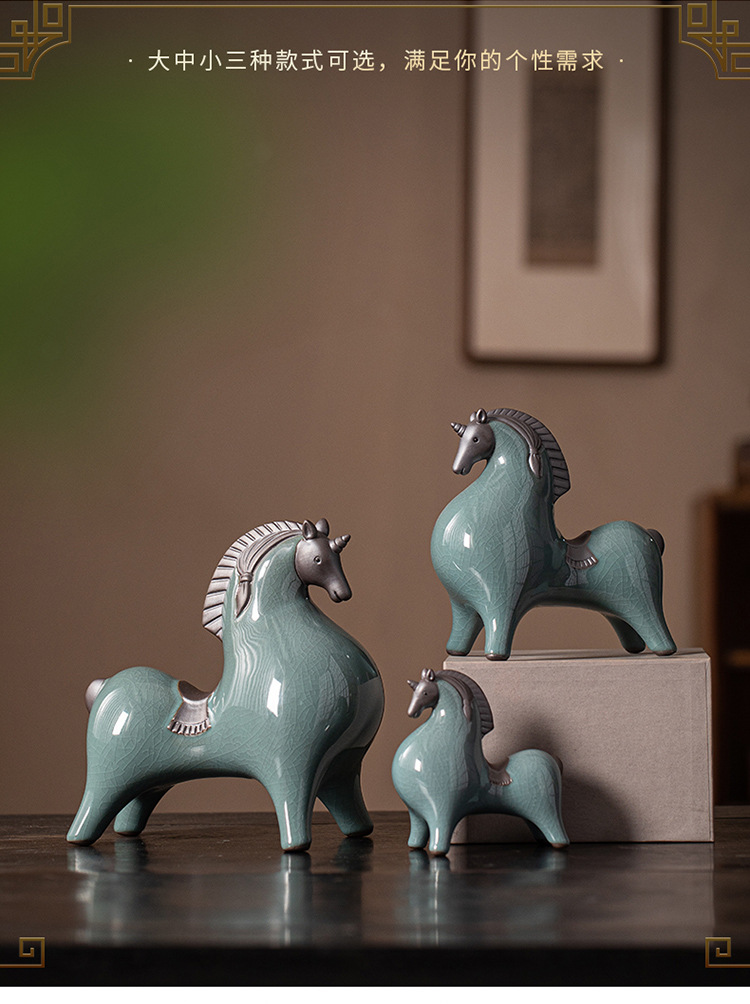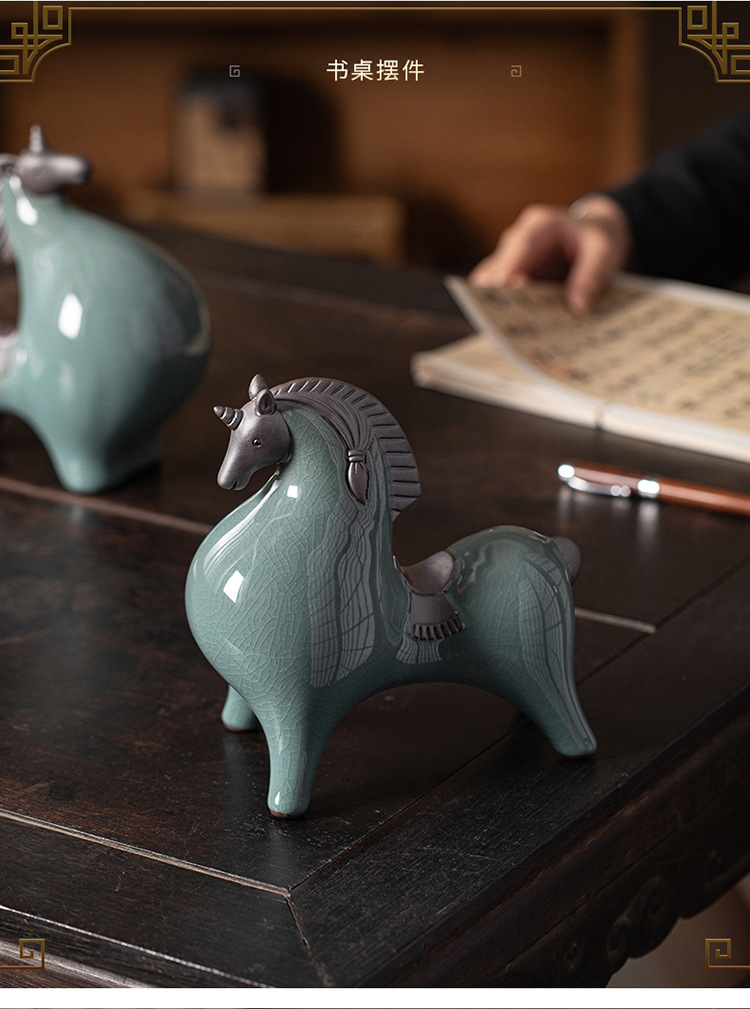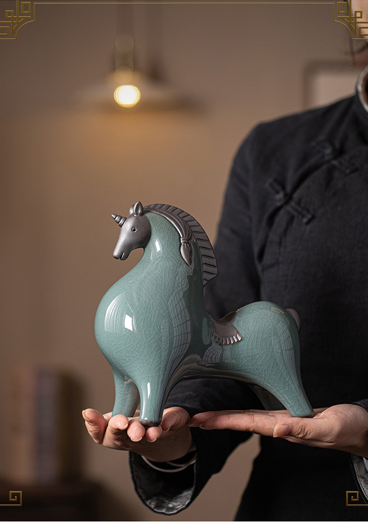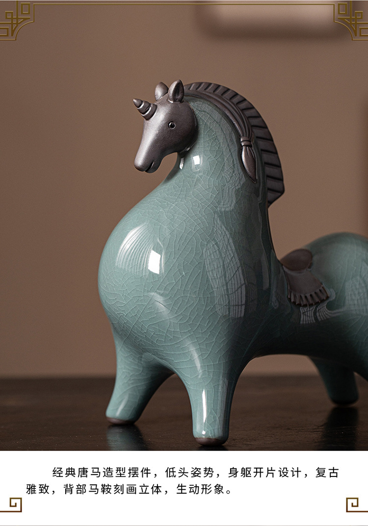 陶器工芸品、哥窯唐馬飾り、自宅玄関、オフィス、馬年飾り、動物馬干支飾り