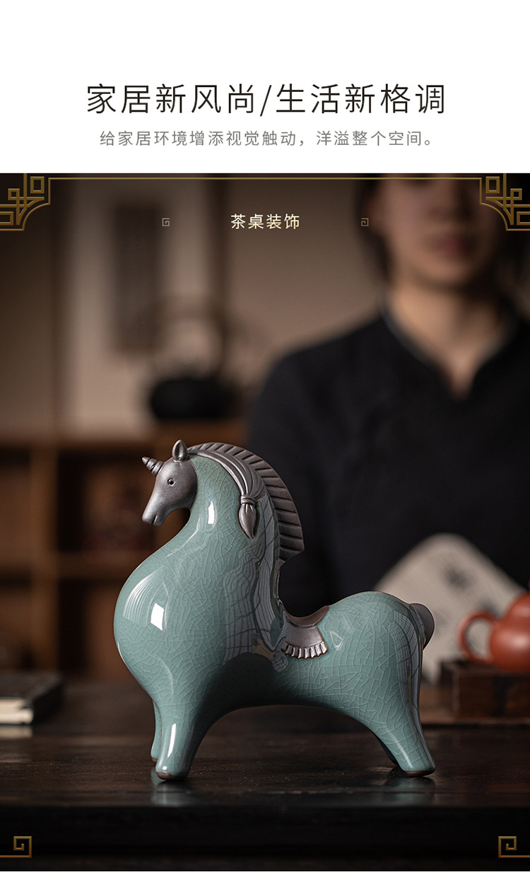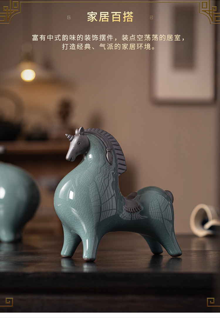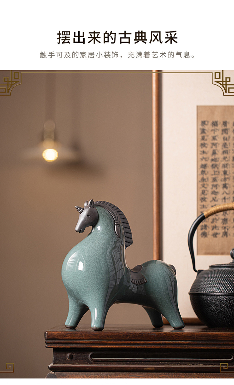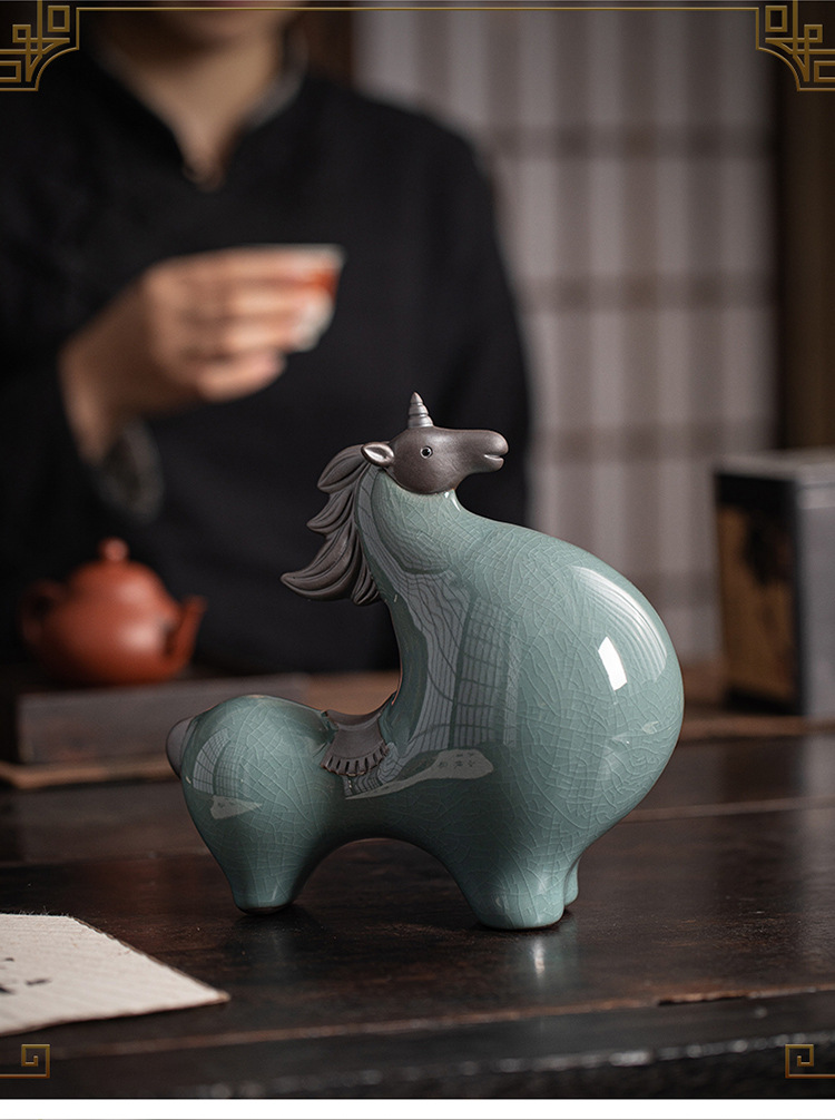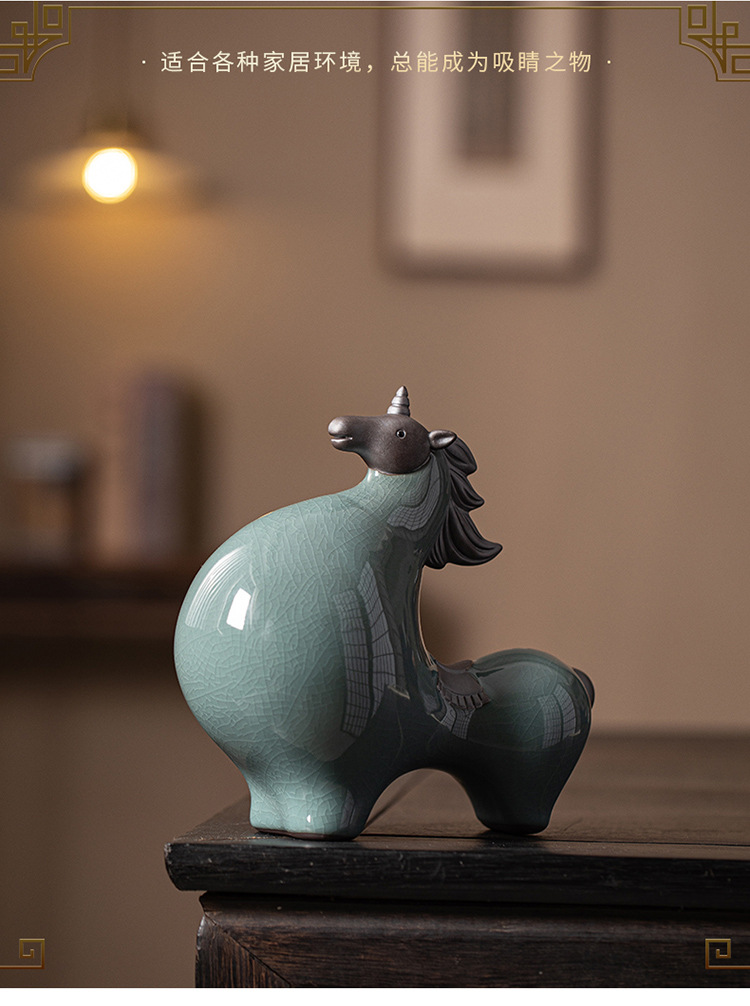 陶器工芸品、哥窯唐馬飾り、自宅玄関、オフィス、馬年飾り、動物馬干支飾り