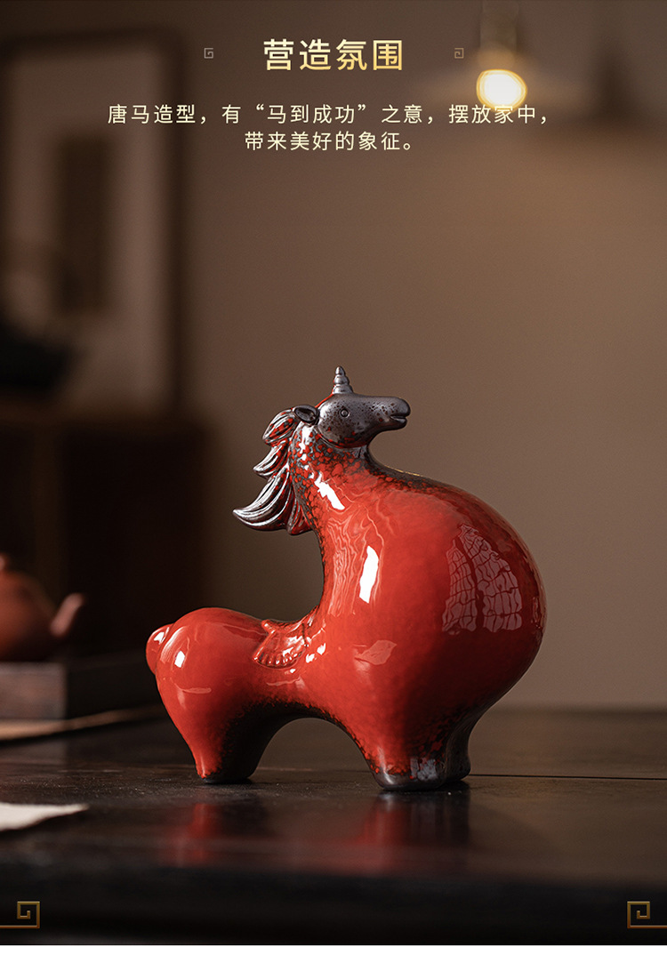陶瓷马小摆件招财客厅酒柜办公室桌面红色生肖马年吉祥物马到成功