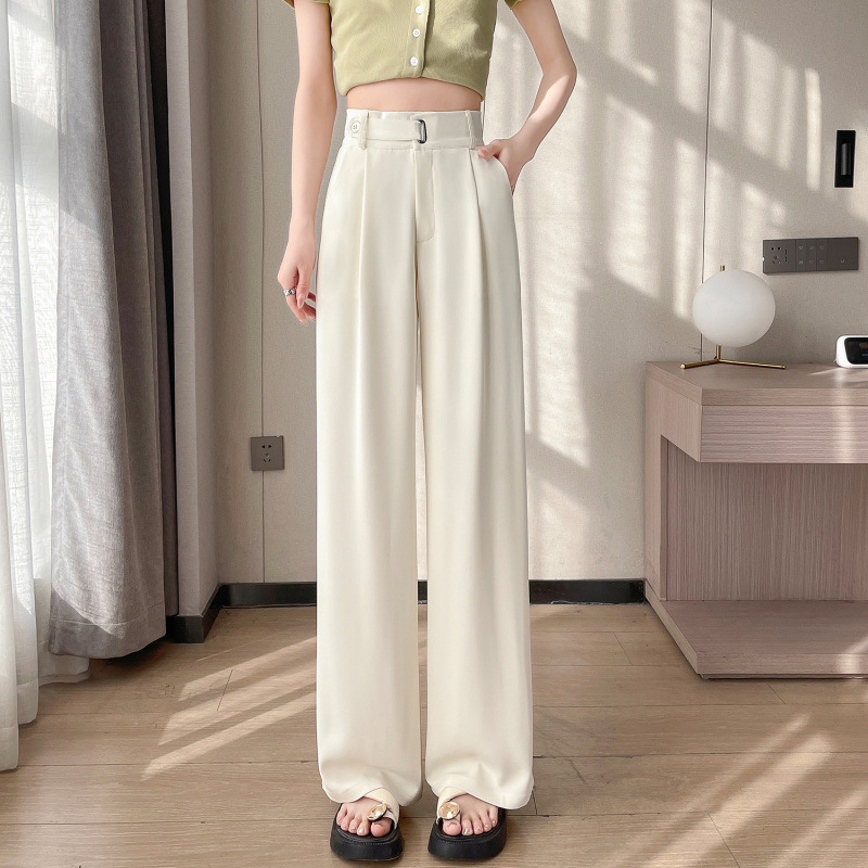 女性用ドレープスーツパンツ 2025 夏薄手ドレープアイスシルクワイドレッグパンツ気質通勤ナローストレートパンツ