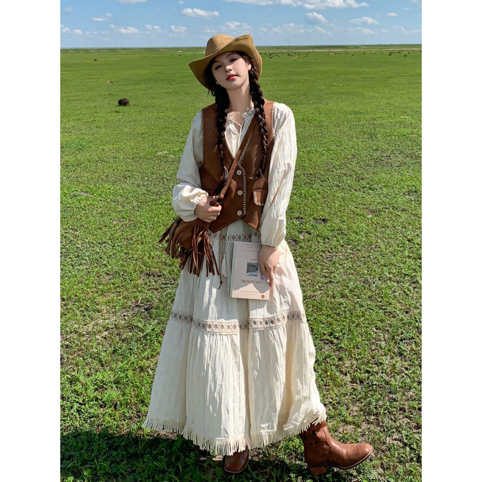 四川西部新疆雲南大理旅行服ボヘミアンニッチタッセルスーツドレスエスニックスタイルロングスカート