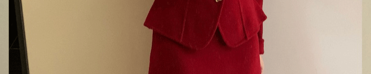 小个子气质名媛红色圣诞战袍小香风毛呢外套半身裙两件套装女秋冬