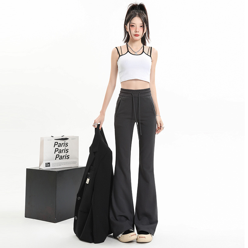 高品質のマイクロスピーカーのズボンの女性の2025春夏の新型の薄いタイプの狭い版のまっすぐな筒のデザイン感のカジュアルなスポーツの衛のズボン