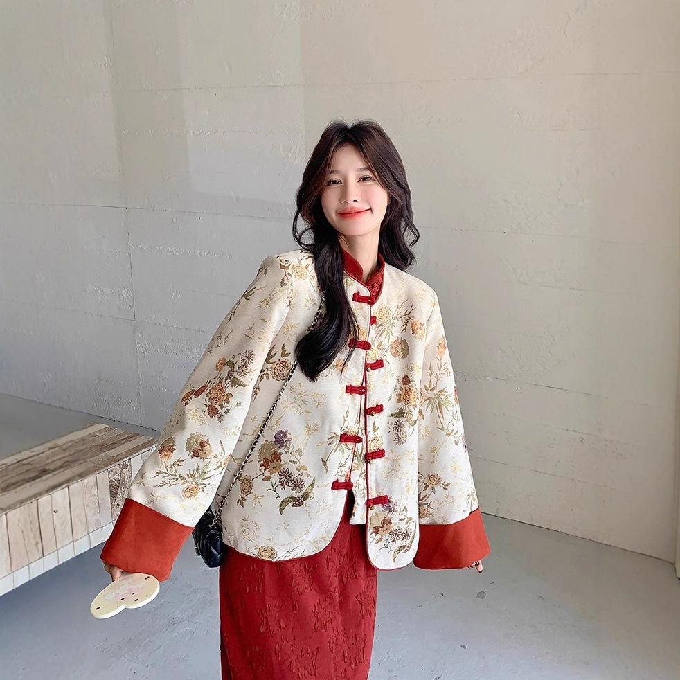 新中式国风套装女2025秋季新款旗袍连衣裙复古提花盘扣外套两件套