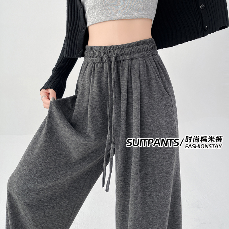 ニットのもち米のズボンの女性の秋冬の高腰の垂れ下がった感じの広腿のズボンとベルベットの怠惰なレジャーのズボン