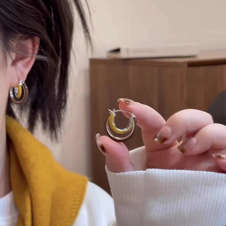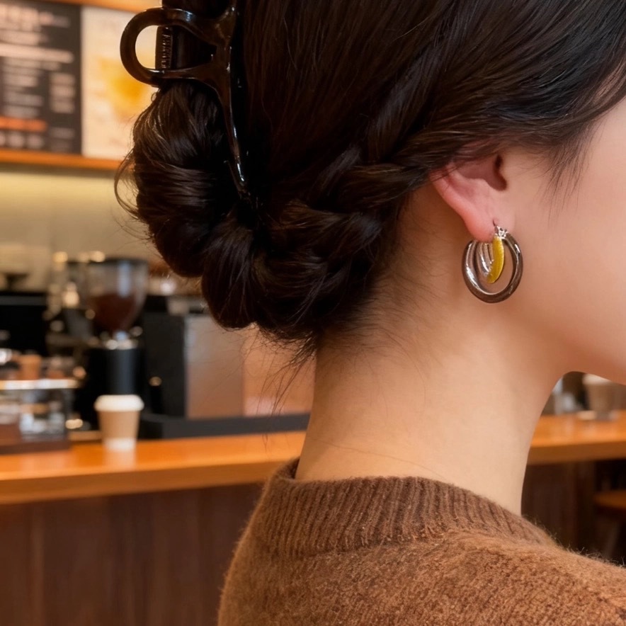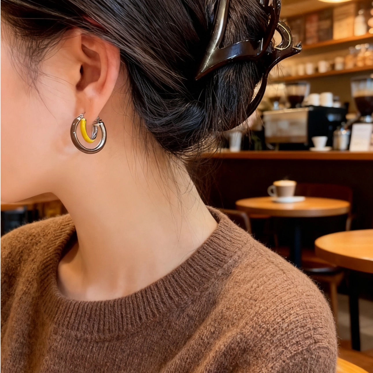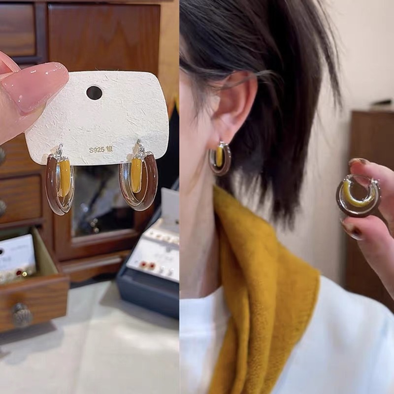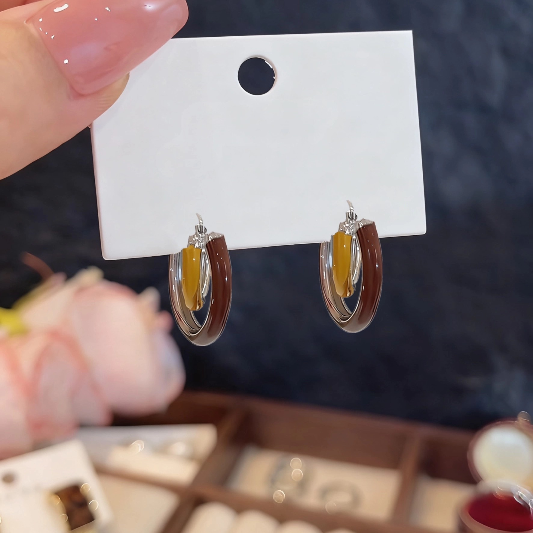 时尚法式复古高级感黄咖撞色圈圈耳环女轻奢小众设计气质耳扣耳饰
