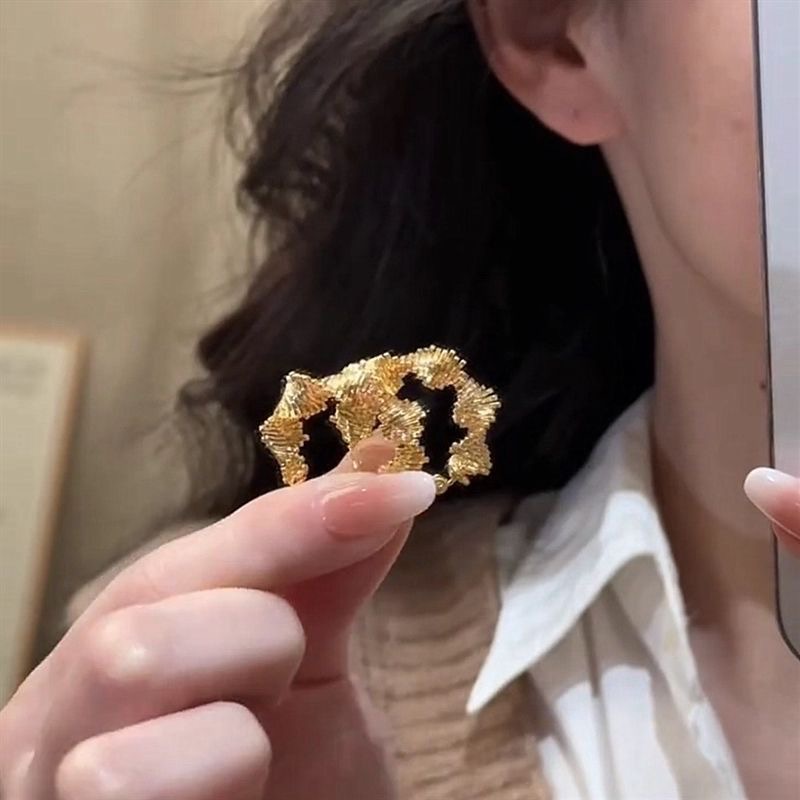 2025新款时尚法式金色交叉耳圈耳环女轻奢小众金属设计高级感耳钉