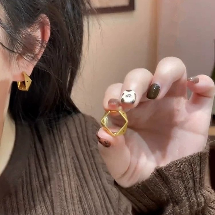 小众设计感时尚金色波点不规则耳扣法式女复古高级感气质百搭耳环