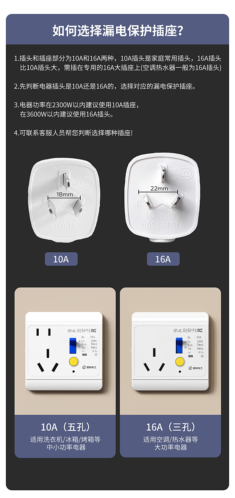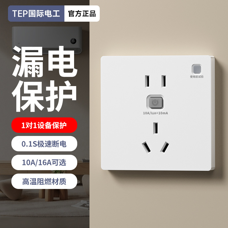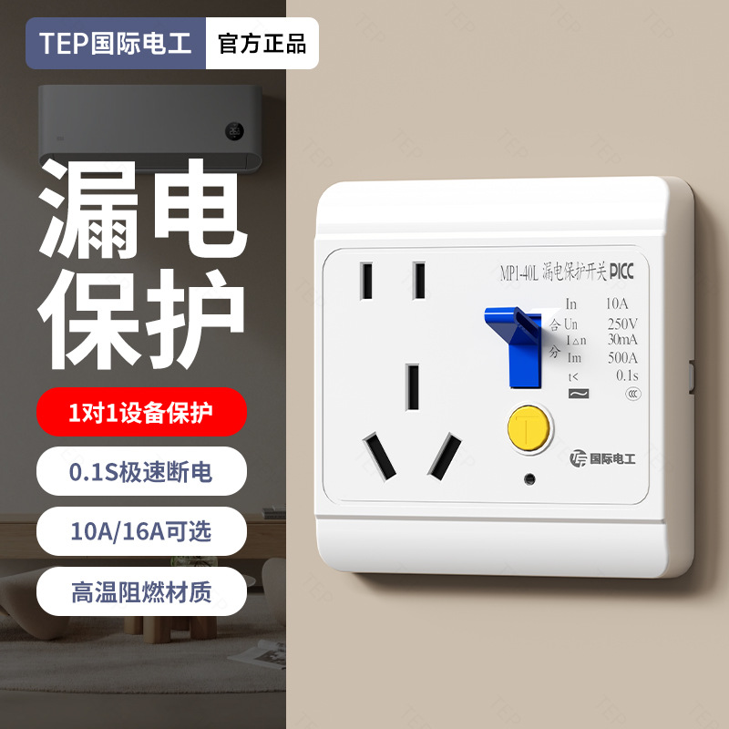 国际电工空调16a专用带漏电保护器的插座热水器86型10a漏保开关