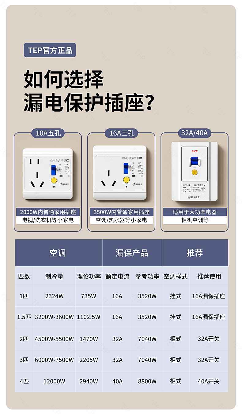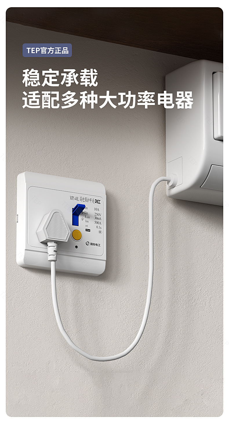 空调漏电保护插座16A电热水器漏保插座10A家用漏电保护开关32/40A