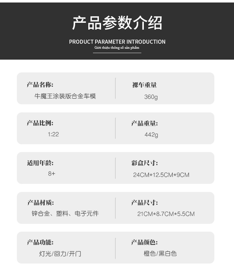 (盒装)仿真1比24牛魔王涂装版合金跑车模型摆件玩具批发代发
