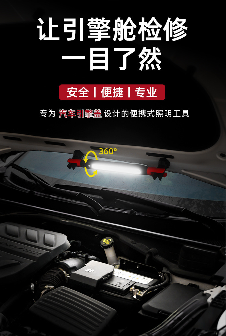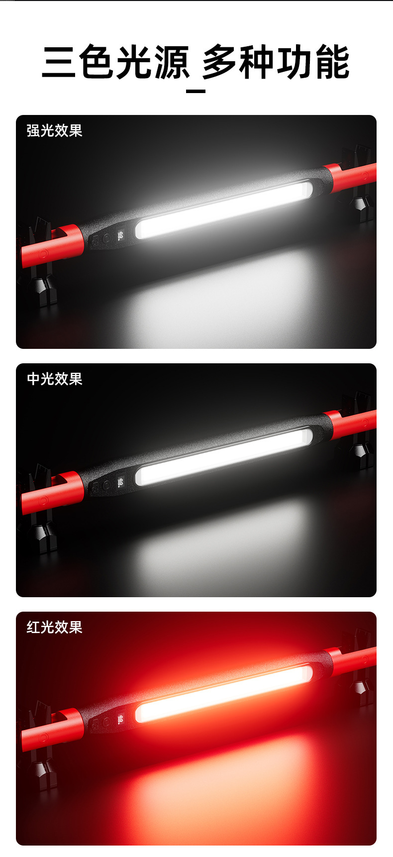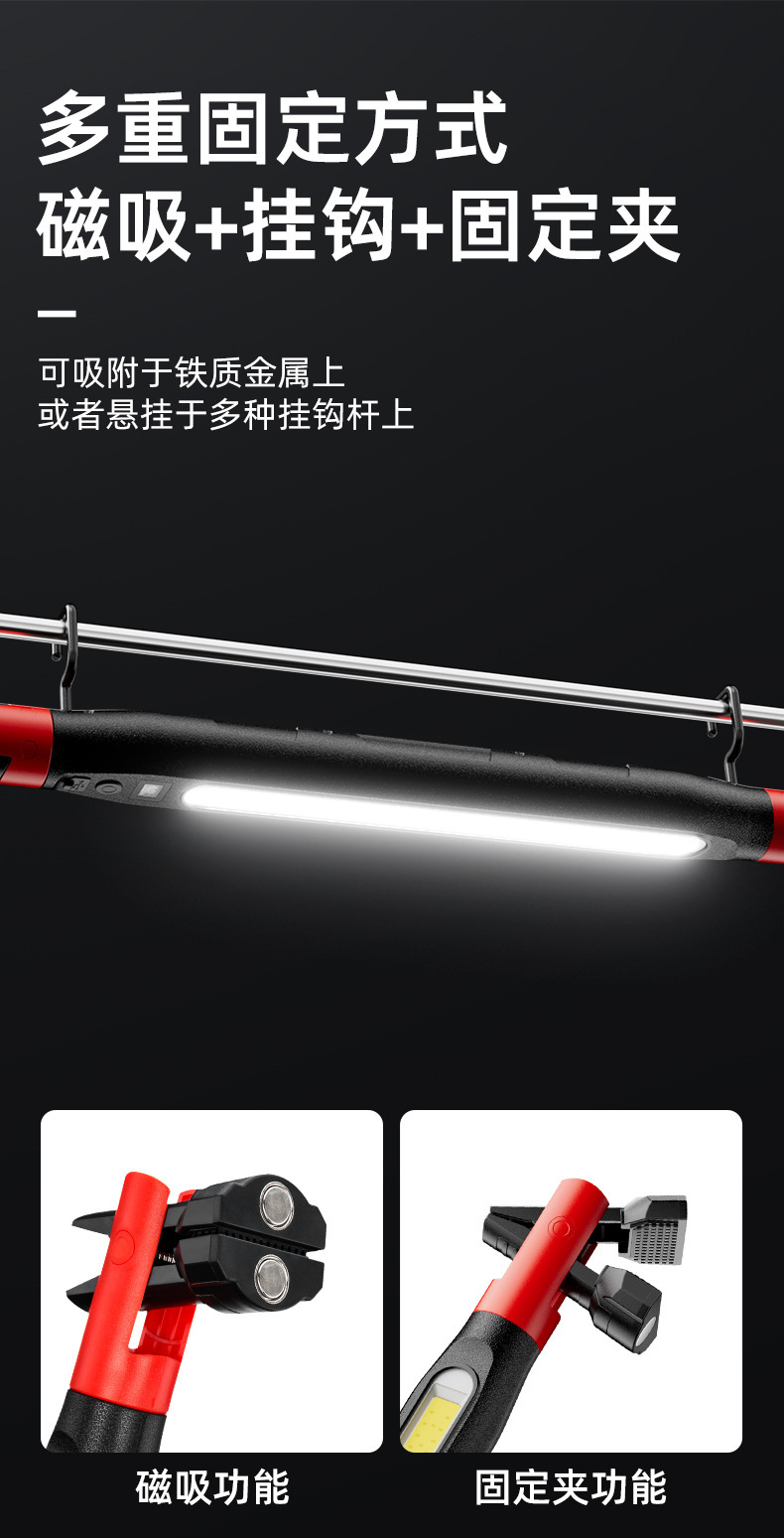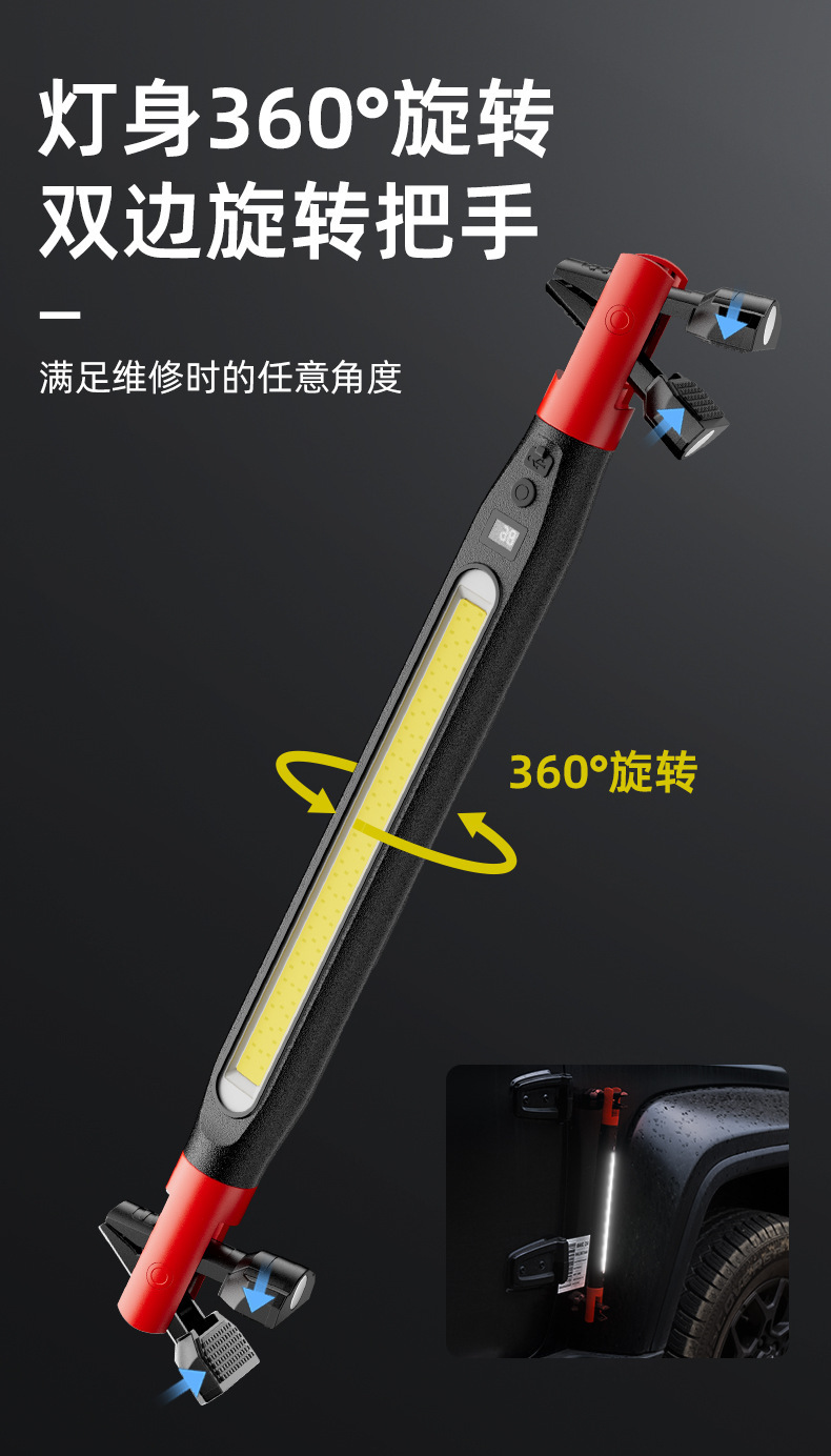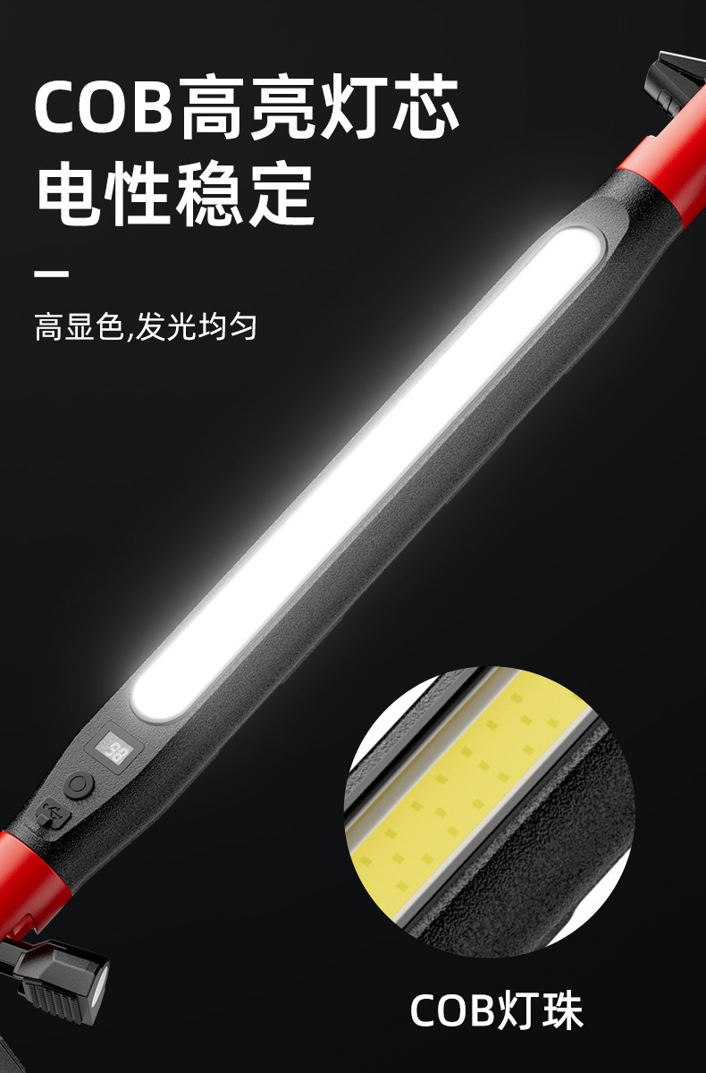 跨境新款磁吸COB工作灯USB充电多功能高亮磁吸挂钩长条汽车维修灯